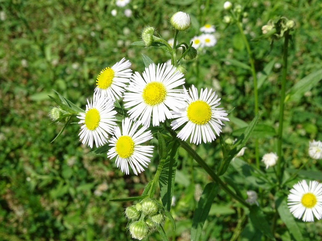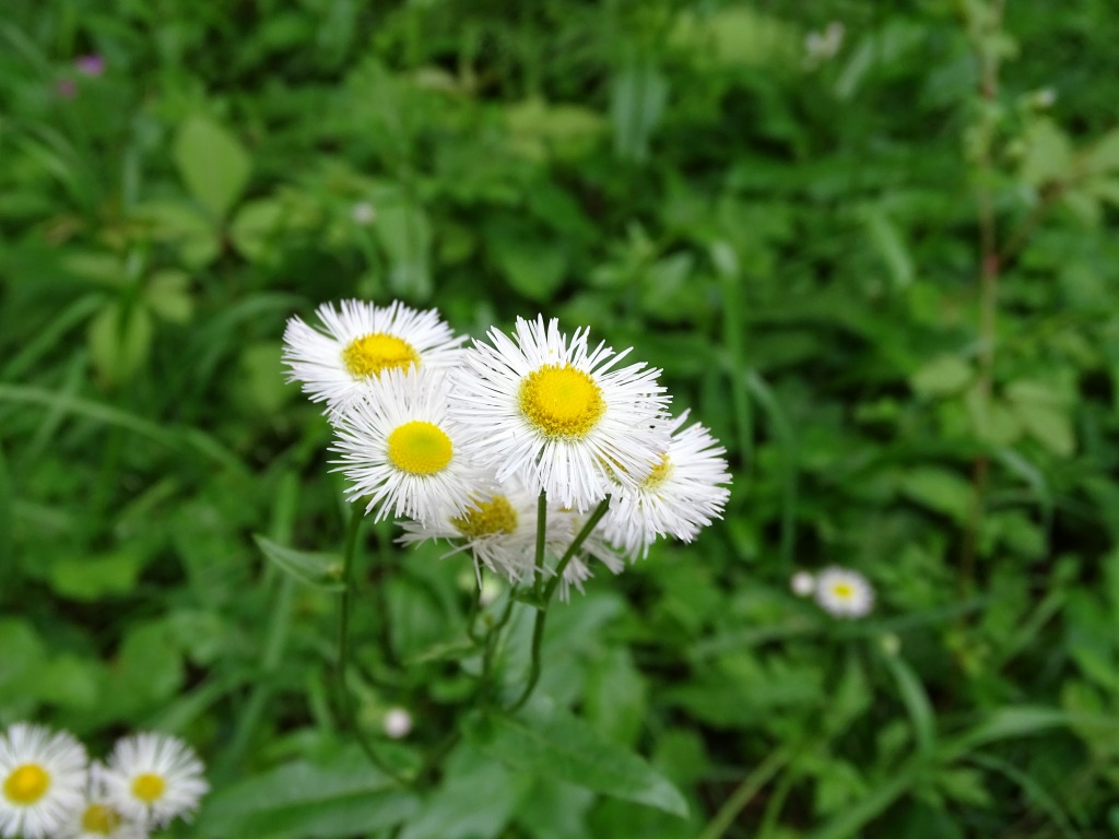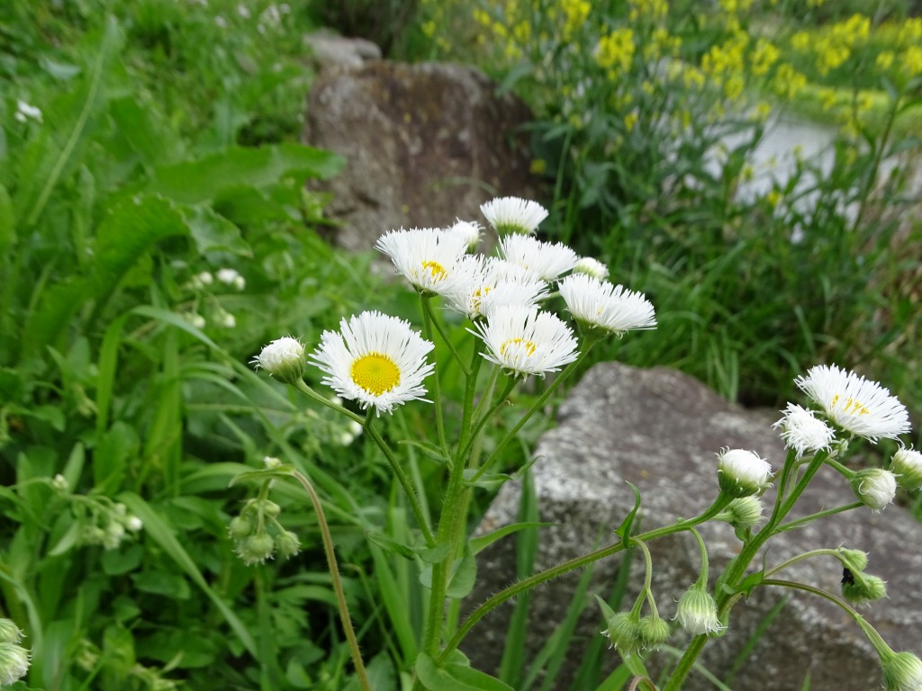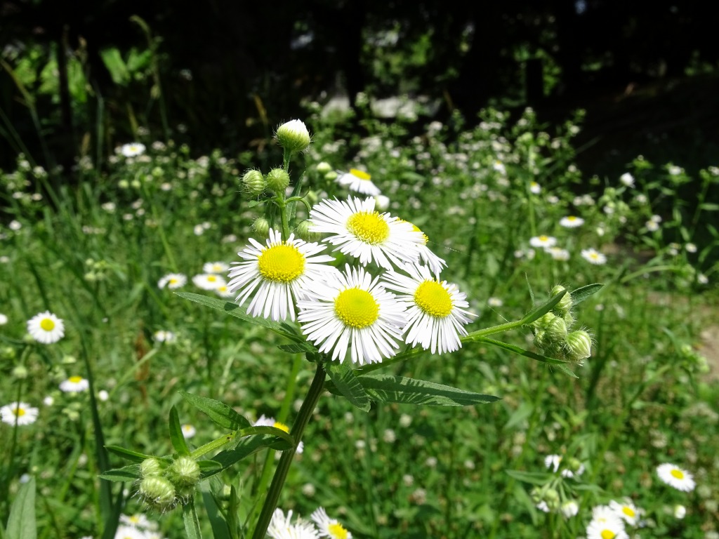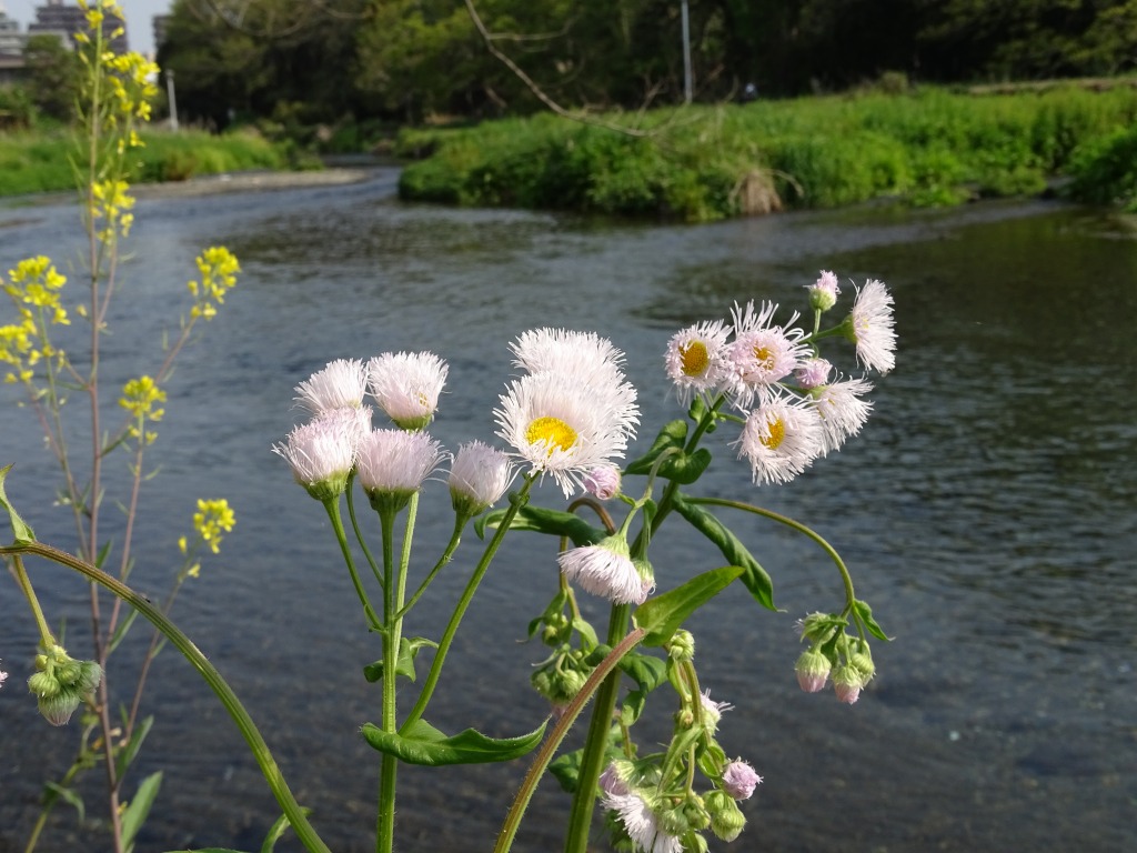 こんにちは、水前寺江津湖公園です。 公園内でよく見る花に、ハルジオンとヒメジョオンがあります。今はちょうどヒメジョオンが見頃で、ハルジオンは終わりの時期です。 一緒に咲いていると、どちらの花なのか、なかなか区別が難しいです。