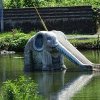 誰もいない池の中にゾウさんのすべり台があるのは、こういういきさつがあるからです。