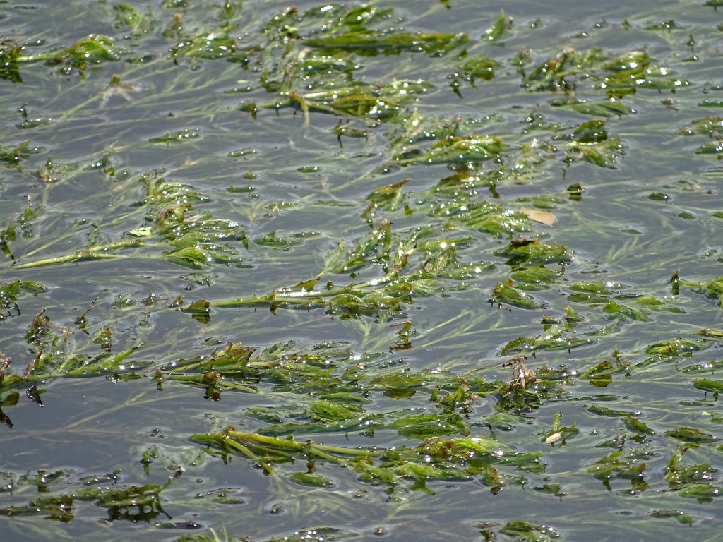 下江津湖ではイバラモという水草を多く見かけます。イバラと名前の付く通り、トゲのある水草です。