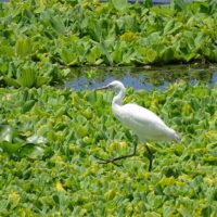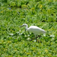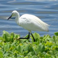 園内でチュウサギを見かけました。よく見かける白いサギのように見えますが、実は希少種に指定されている珍しい野鳥です。