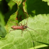 しかし、他の3つのカミキリムシはどうでしょうか。葉っぱの大きさを考えていただくと、小さなカミキリムシだと分かります。なかなか見つけづらいですよね。江津湖でも細かく探していくと、こういう見たことないようなカミキリムシを見つけることができるかもしれませんよ♪
