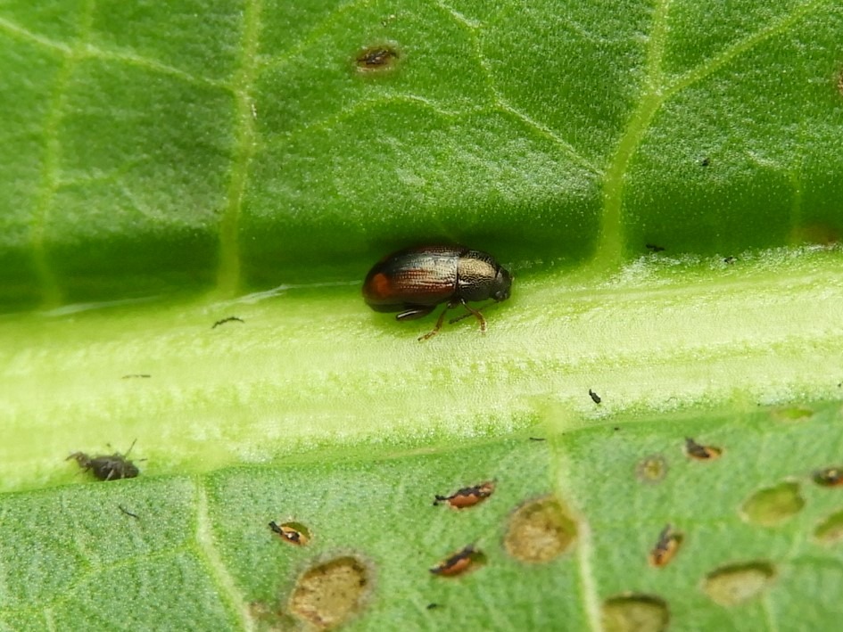 ハムシと聞いても見たことない方も多いと思います。葉っぱと大きさを比べてみても小さい昆虫だと分かります。じっくり探さないとなかなか見つけることのできない昆虫たちです。興味のある方は葉っぱの裏などのぞきながら、探してみて下さい。