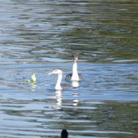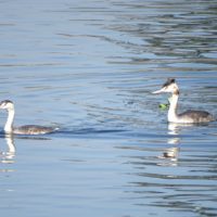 カンムリカイツブリがやって来ています。毎年江津湖で観察できる野鳥ですが、数は少ないです。