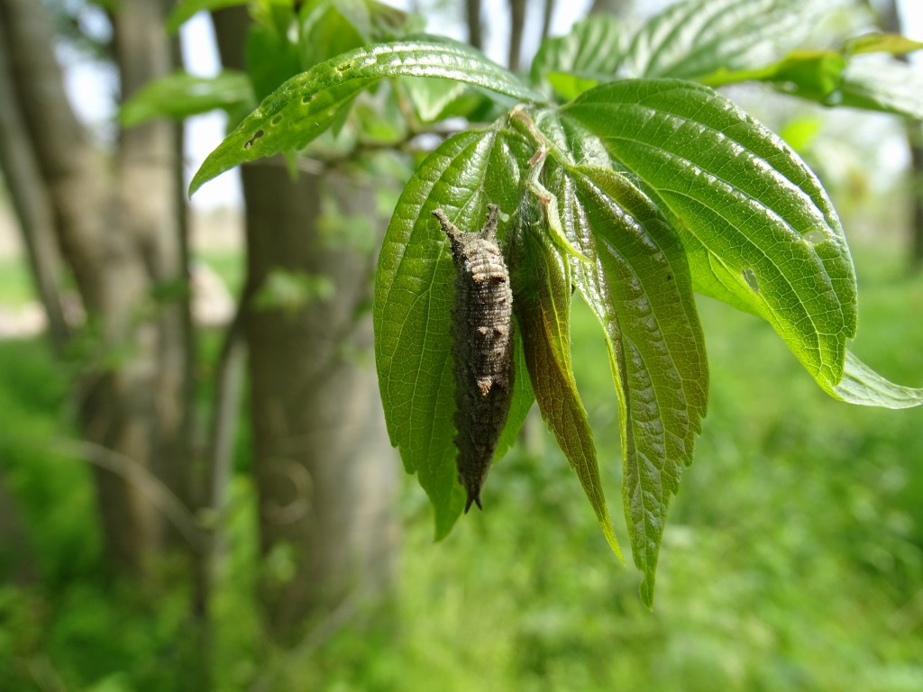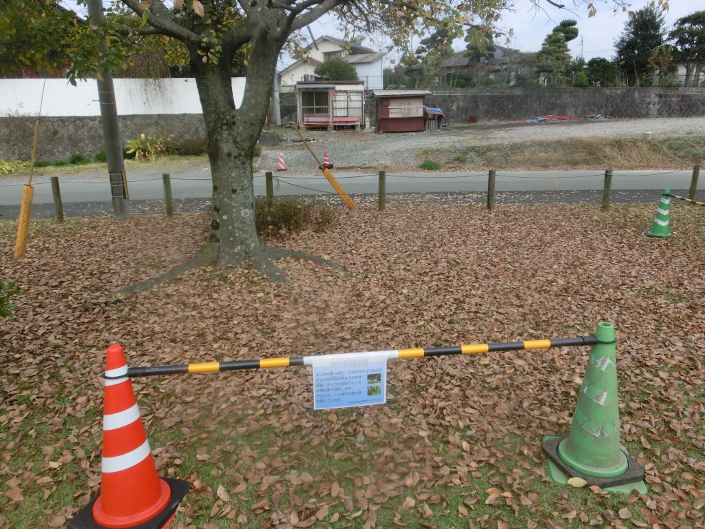 こんにちは、水前寺江津湖公園です。 園内の木々は紅葉し、落ち葉として地面を彩っています。 いつもなら葉が落ちきったころに、落ち葉を清掃してしまいますが、今季は数カ所エノキの落ち葉を残そうと考えています。 というのも、エノキの落ち葉にはゴマダラチョウの幼虫が付き、越冬する可能性があるからです。