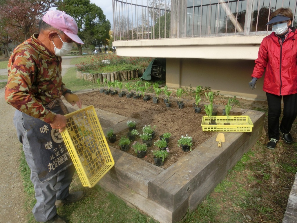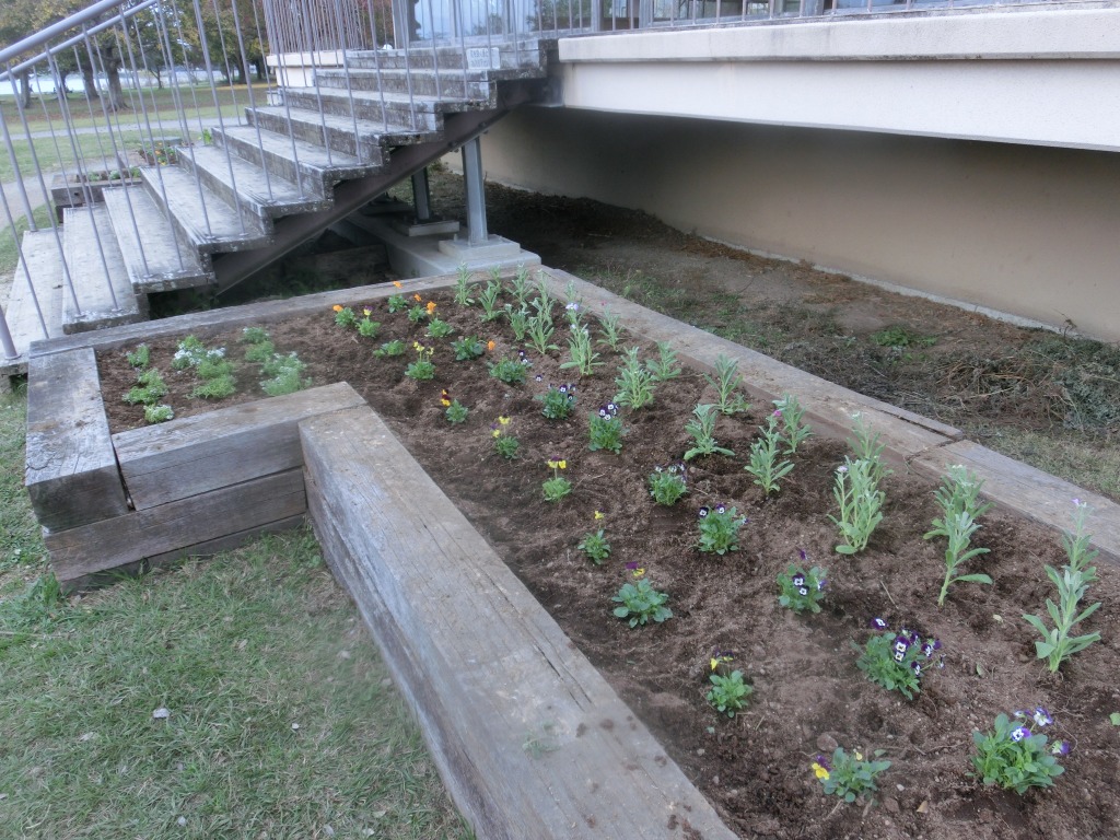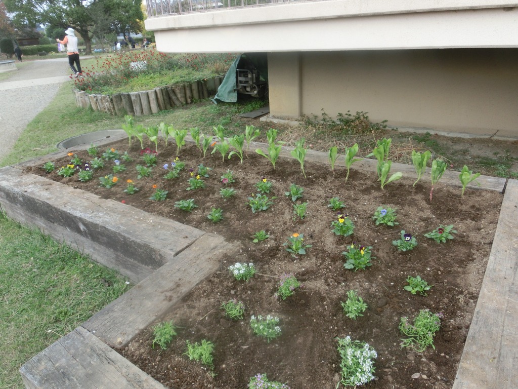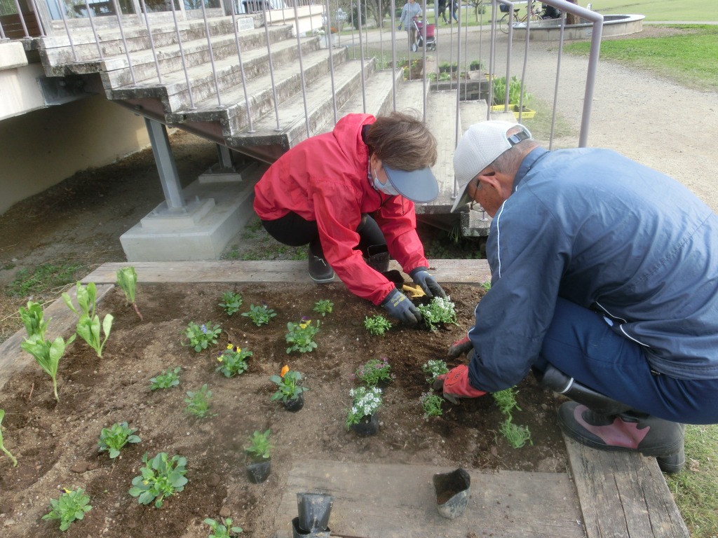 ビオラ、ノースポール、ストック、キンセンカ、アリッサムなどを植えました。お手伝いいただいた皆様、ありがとうございました。