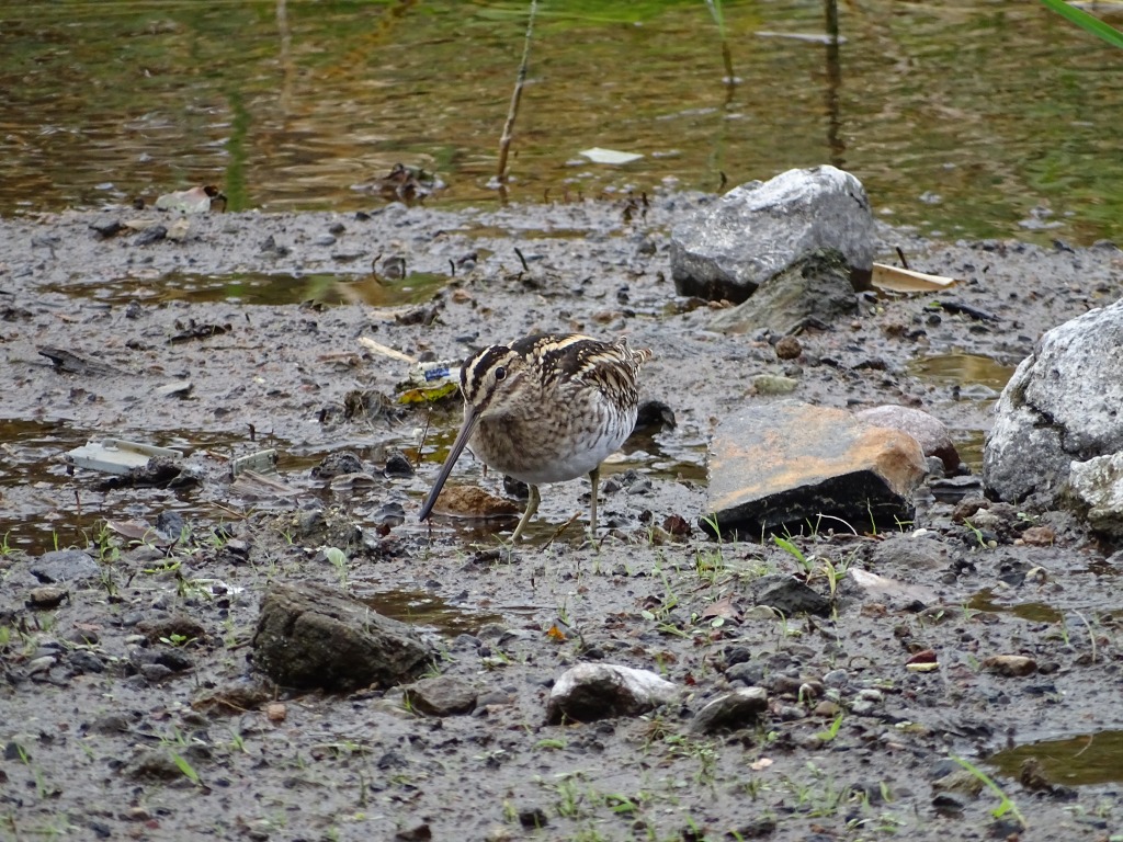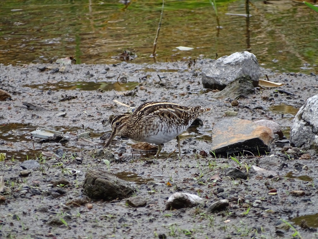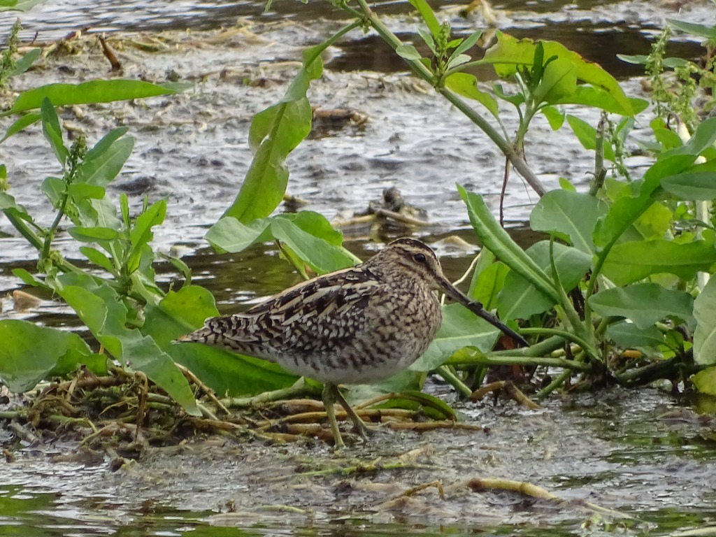 浅瀬をじっくり探してみると、タシギを見かけます。