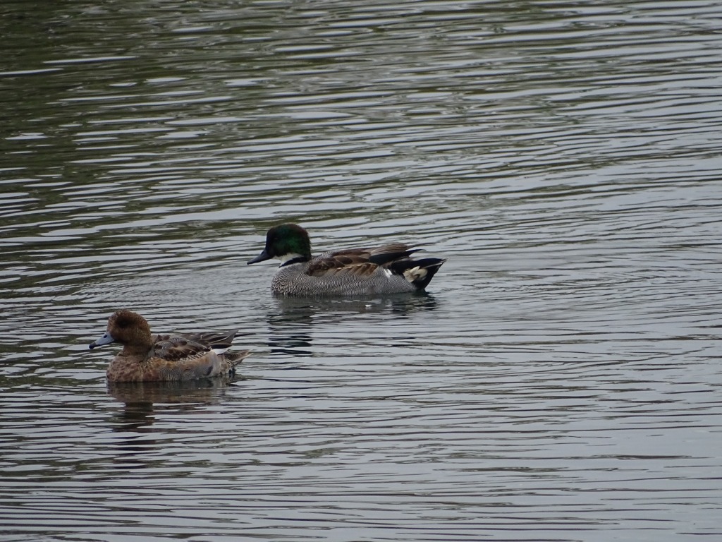 トモエガモです。数年前までは江津湖ではほとんど見ることのなかったカモですが、最近はときどき見かけるようになりました。それでもやはり珍しいカモですので、見つけるとうれしくなります。