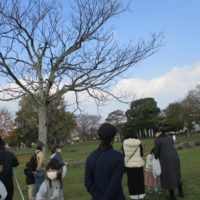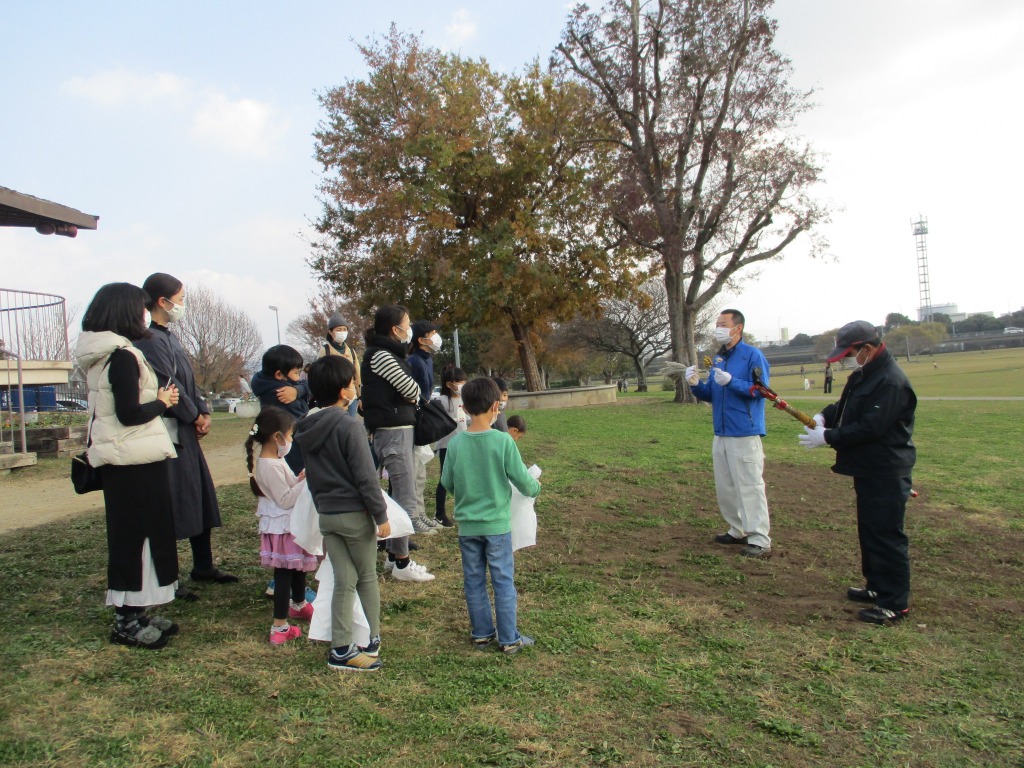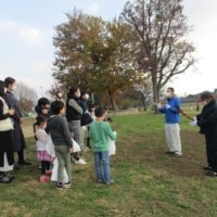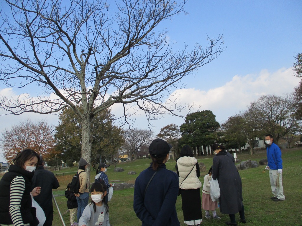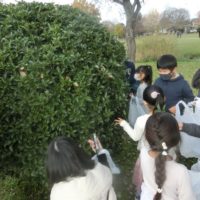 まずは公園内を歩いて、どういう木の実や葉っぱを使うのか観察します。