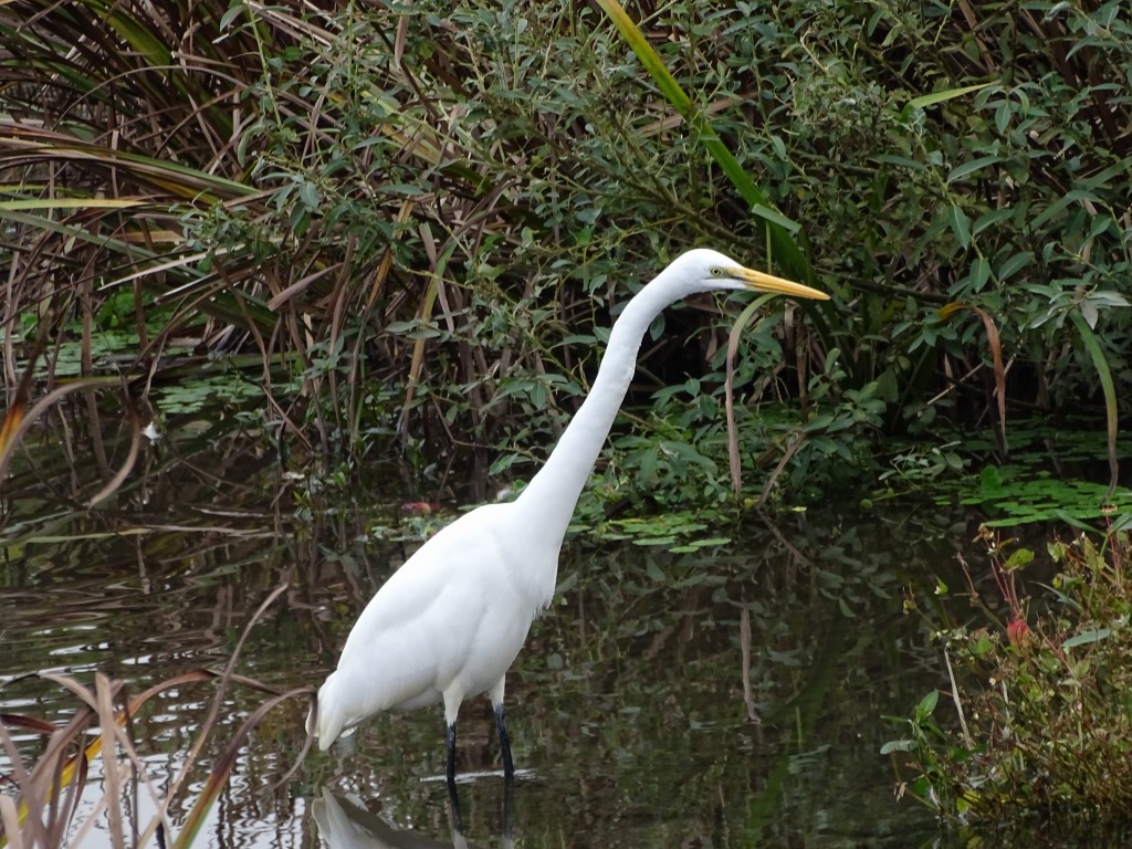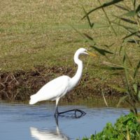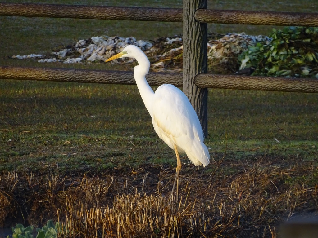 園内では大きくて白いサギ、ダイサギをよく見かけます。しかしときどきアオサギくらい大きなダイサギを見たという方いらっしゃいませんか。それは俗に言うダイダイサギ(オオダイサギ)かもしれません。