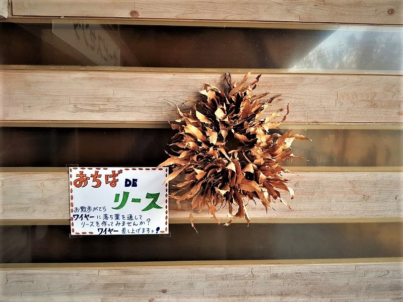 サービスセンターでは、園内の植物を使って作ったリースで少し飾り付けをしています。