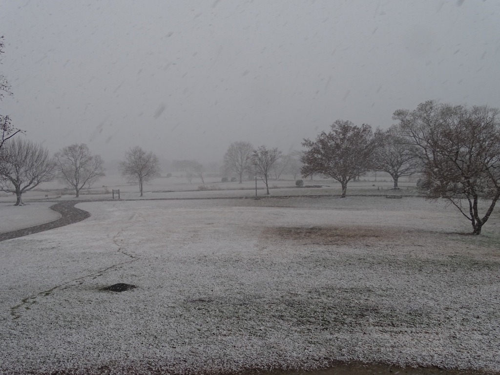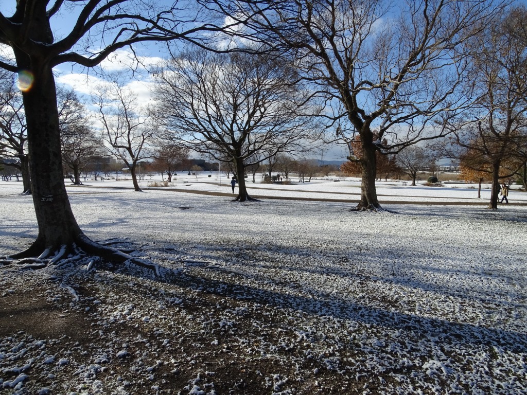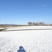 昨日は熊本では珍しく、まとまった雪が降りました。今朝の江津湖は雪景色となりました。