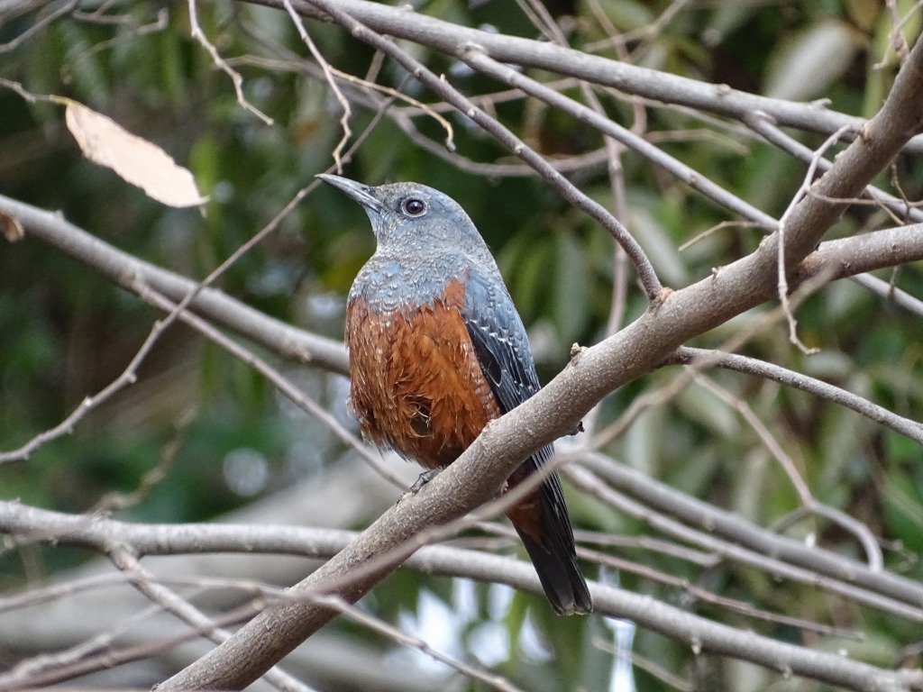 江津湖でときどき見かける野鳥、イソヒヨドリです。