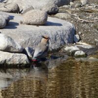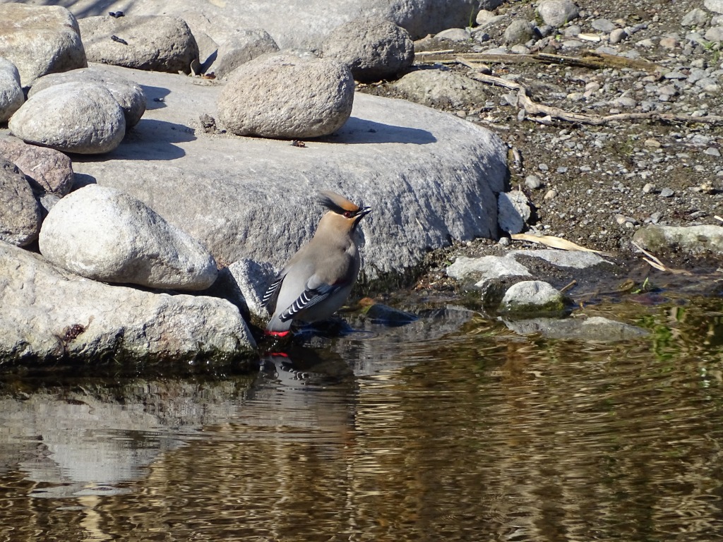 木の実を食べたり、水辺に下りて水を飲んだりしています。頭のとさかがかっこいいですね。 数は少ないですが、これから増えてくれることに期待したいです。 ちなみに、尾の先が赤いのがヒレンジャクで、尾の先が黄色いのがキレンジャクです。江津湖ではヒレンジャクの方が大半を占めます。