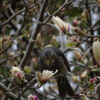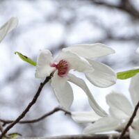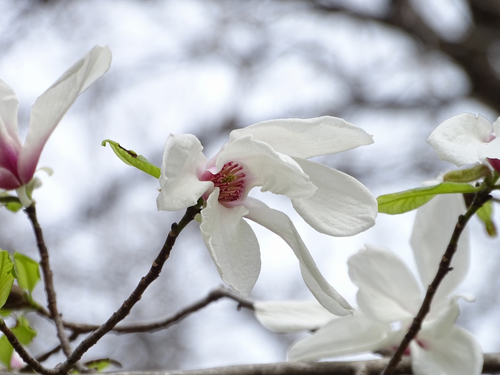 ハクモクレンと非常に似ていますが、ハクモクレンの花弁は9枚、コブシの花弁は6枚であることで区別できます。ハクモクレンよりも枚数が少ないからなのでしょう、ハクモクレンは大輪の花、コブシは少し華奢な花のように見えますね。