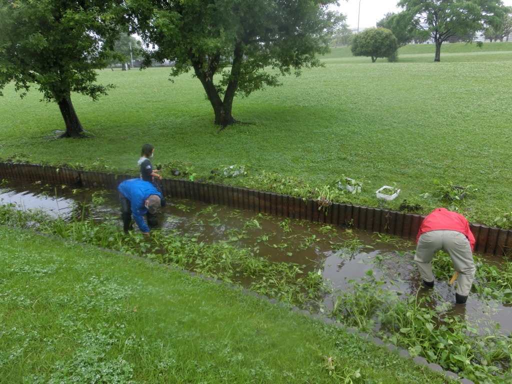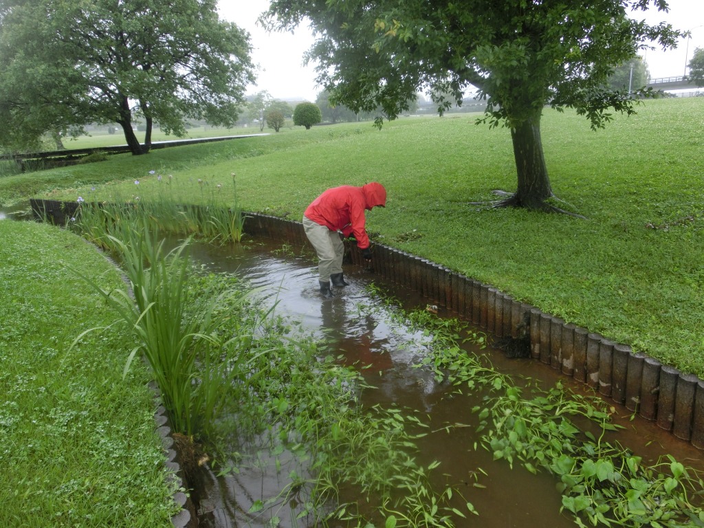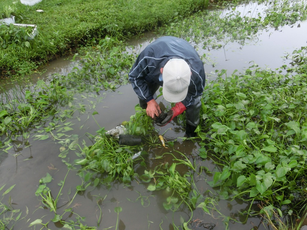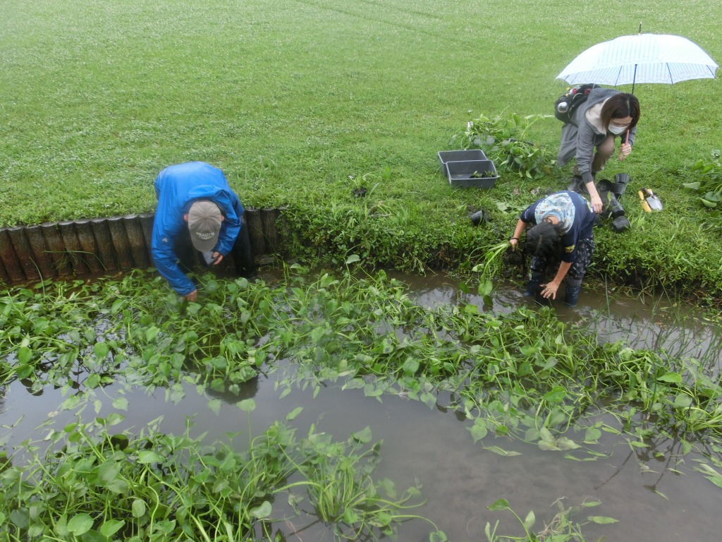 ミズアオイのある場所は、主に自然観察園と水辺の花畑です。自然観察園はもともとミズアオイのあった自生地、水辺の花畑は自生地がダメになった時のための避難地の役割を果たしています。今回は水辺の花畑での作業です。