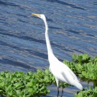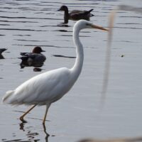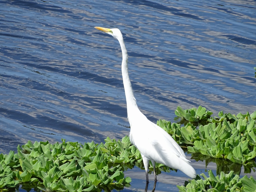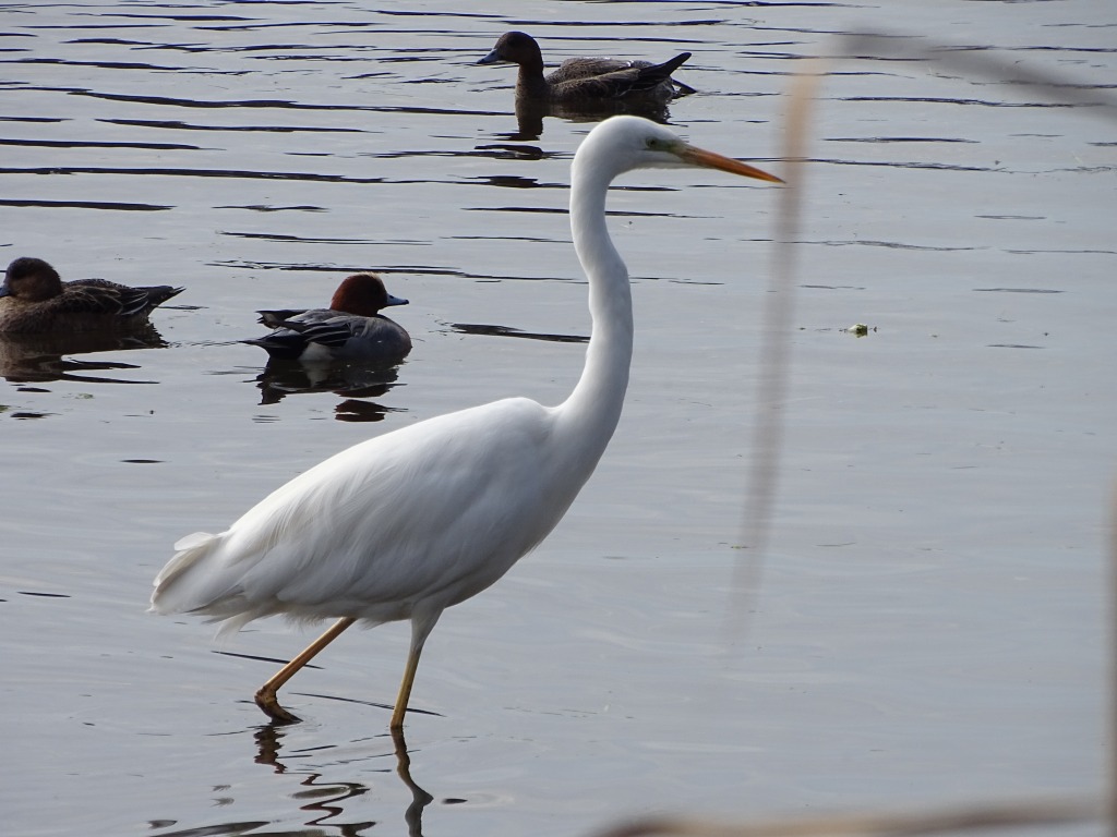 園内では大きな白鷺、ダイサギをよく見かけます。ダイサギは、(オオ)ダイサギとチュウダイサギの亜種に分けられます。