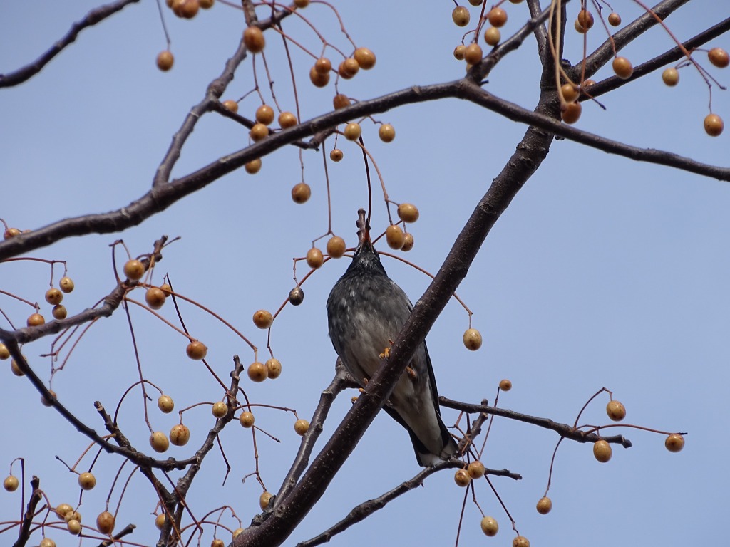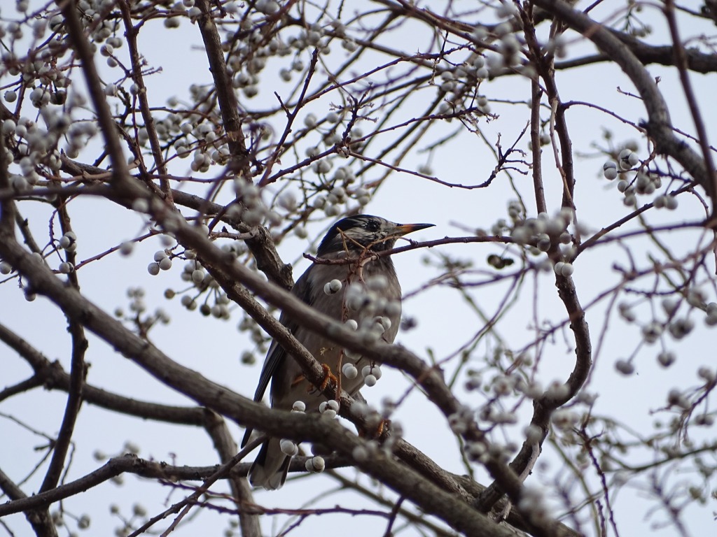 この木にもよくムクドリやヒヨドリがとまっています。この実は正直おいしそうに見えません(この実でろうそくもつくれますし、硬そうですようね)。これについてもよく食べることできるなと思ってしまいます。
