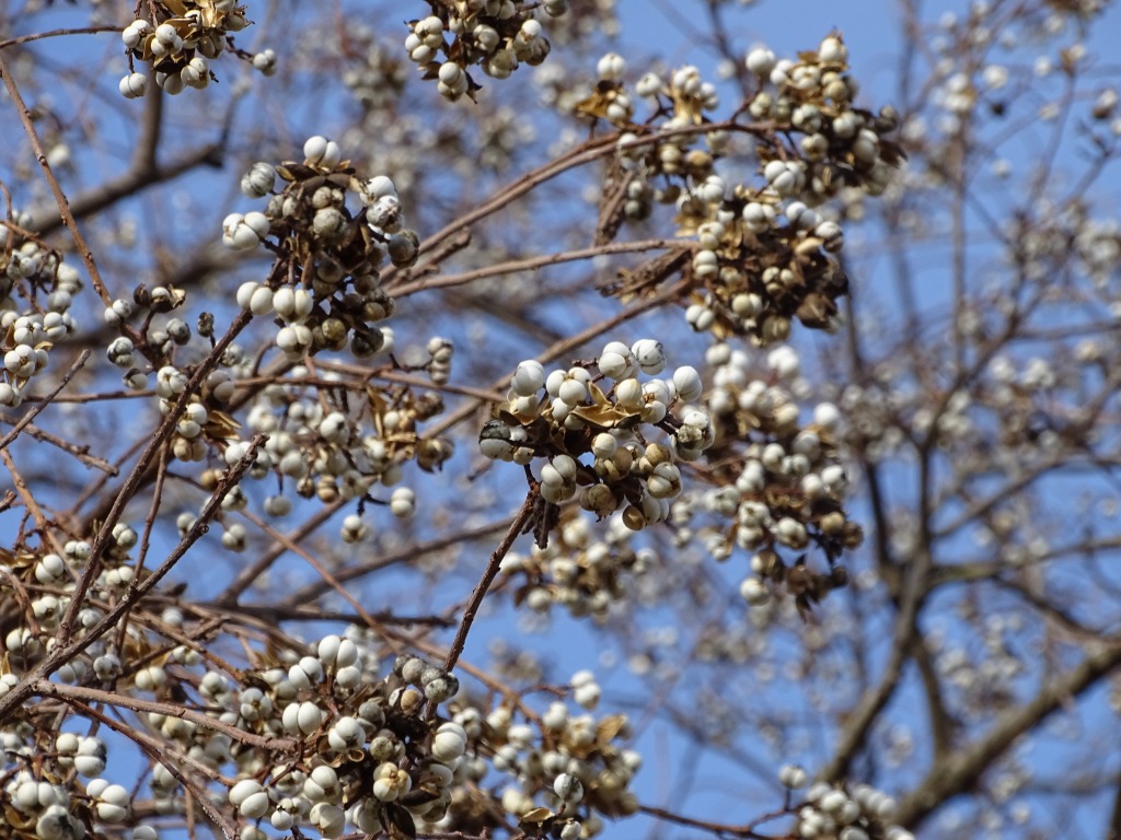 ナンキンハゼの実です。真っ白な実が一面についていて、とてもきれいに見えます。