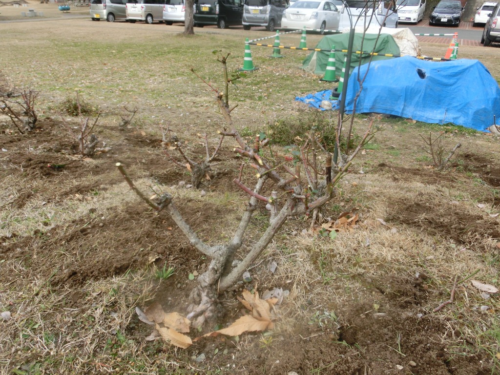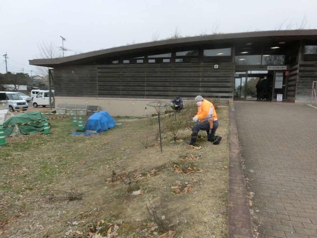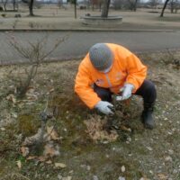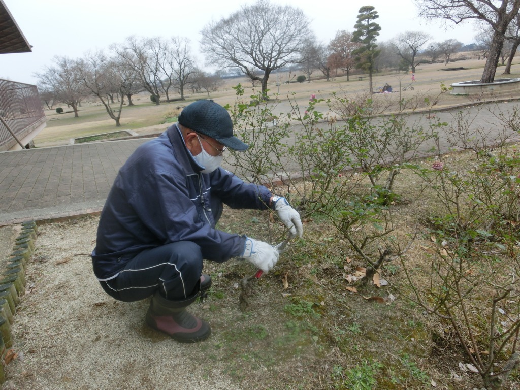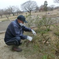こんにちは、水前寺江津湖公園です。 今日は広木地区にあるバラの冬剪定を実施しました。