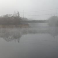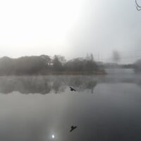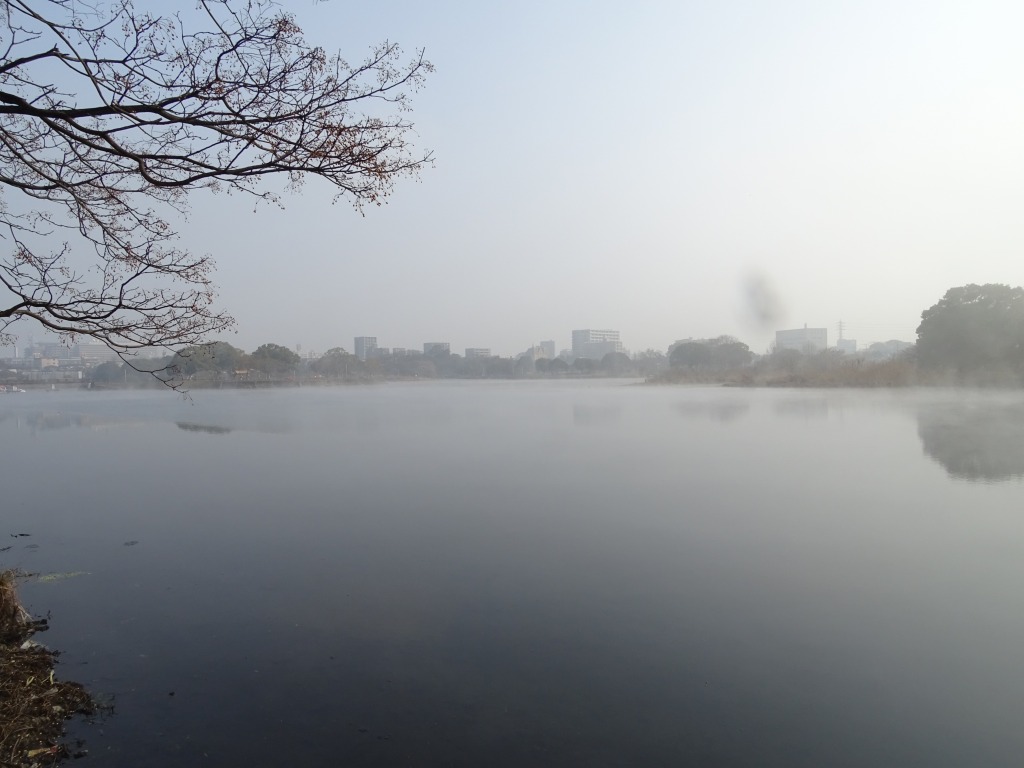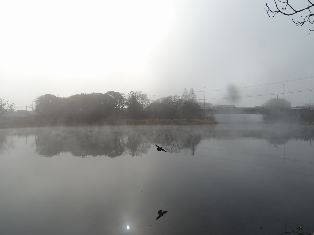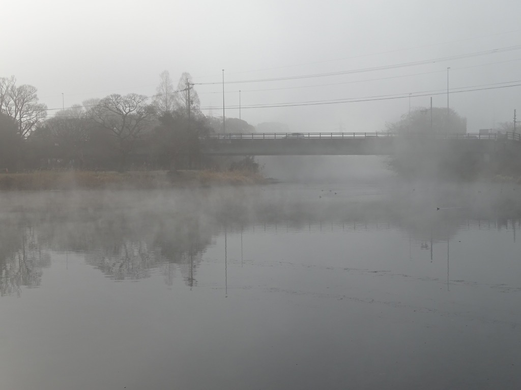 江津湖周辺ではときどき霧が発生します(朝もやとは別です)。大体8時までには晴れるのですが、今日は珍しく9時過ぎまで霧がかかっていました。朝もやとは違った幻想的な景色ですね。
