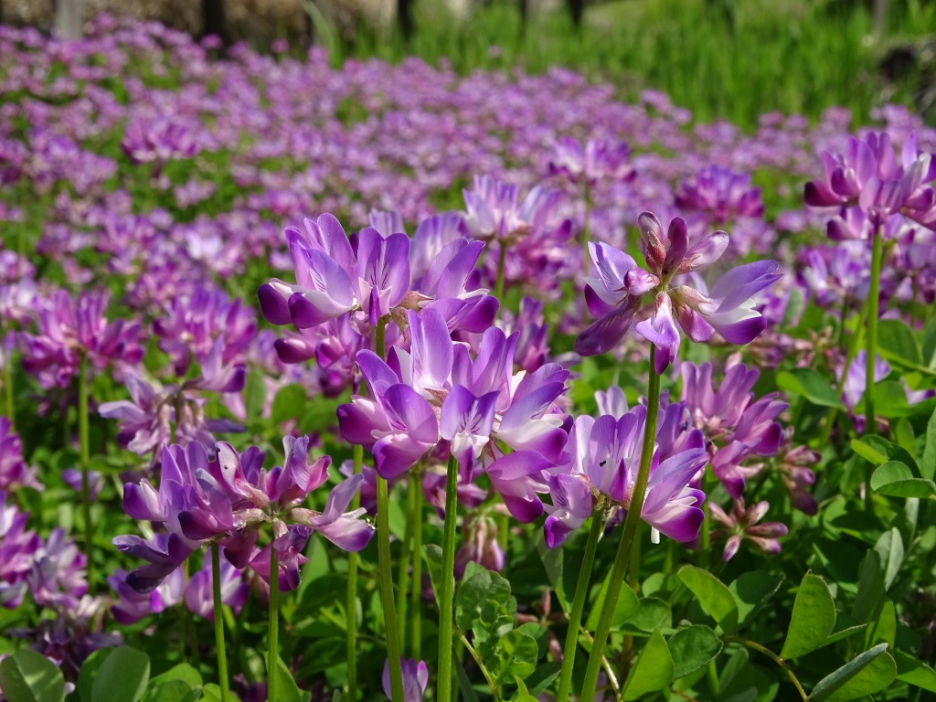 紫の花がとてもきれいです。子どもの頃からなじみの花のように思いますが、帰化植物となっています。 ゲンゲは草花遊びでも有名ですね。親子で草花遊びなど楽しんでみてはいかがでしょうか。