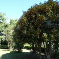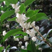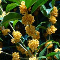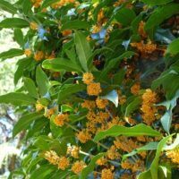 オレンジ色の花を咲かせているのがキンモクセイです。園内のモクセイの中では、一番多く見かける種です。