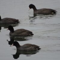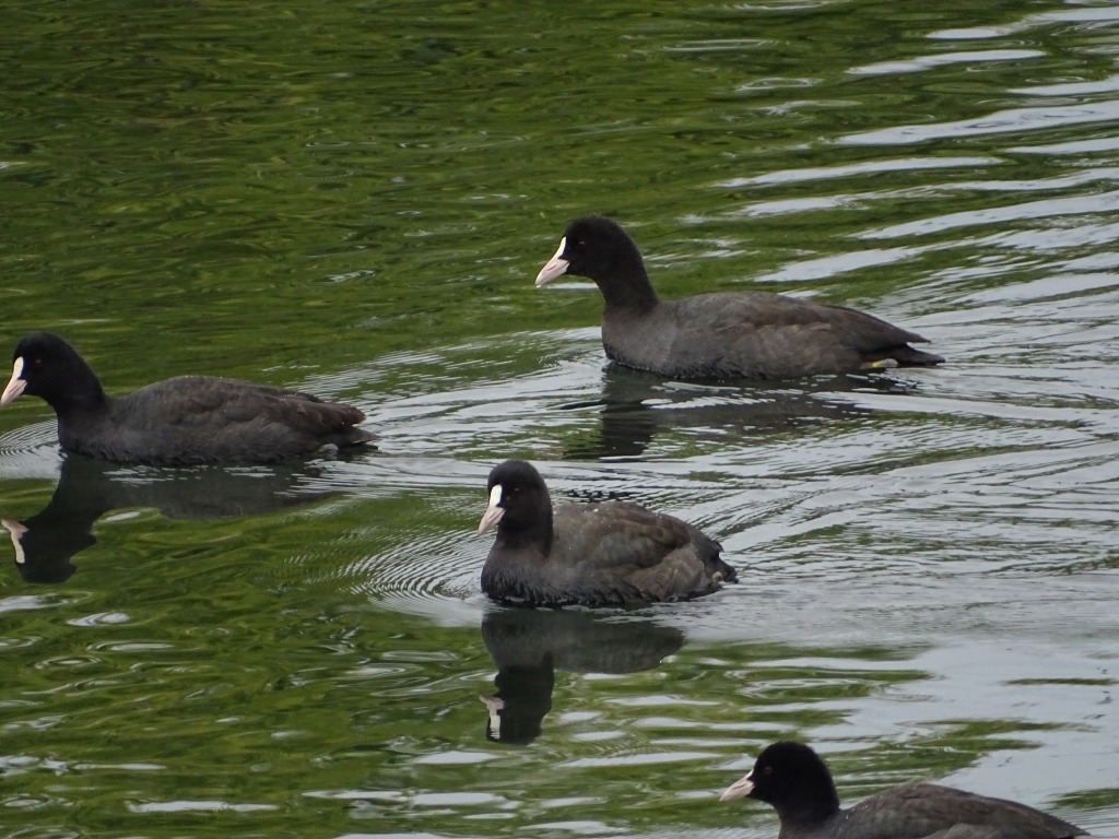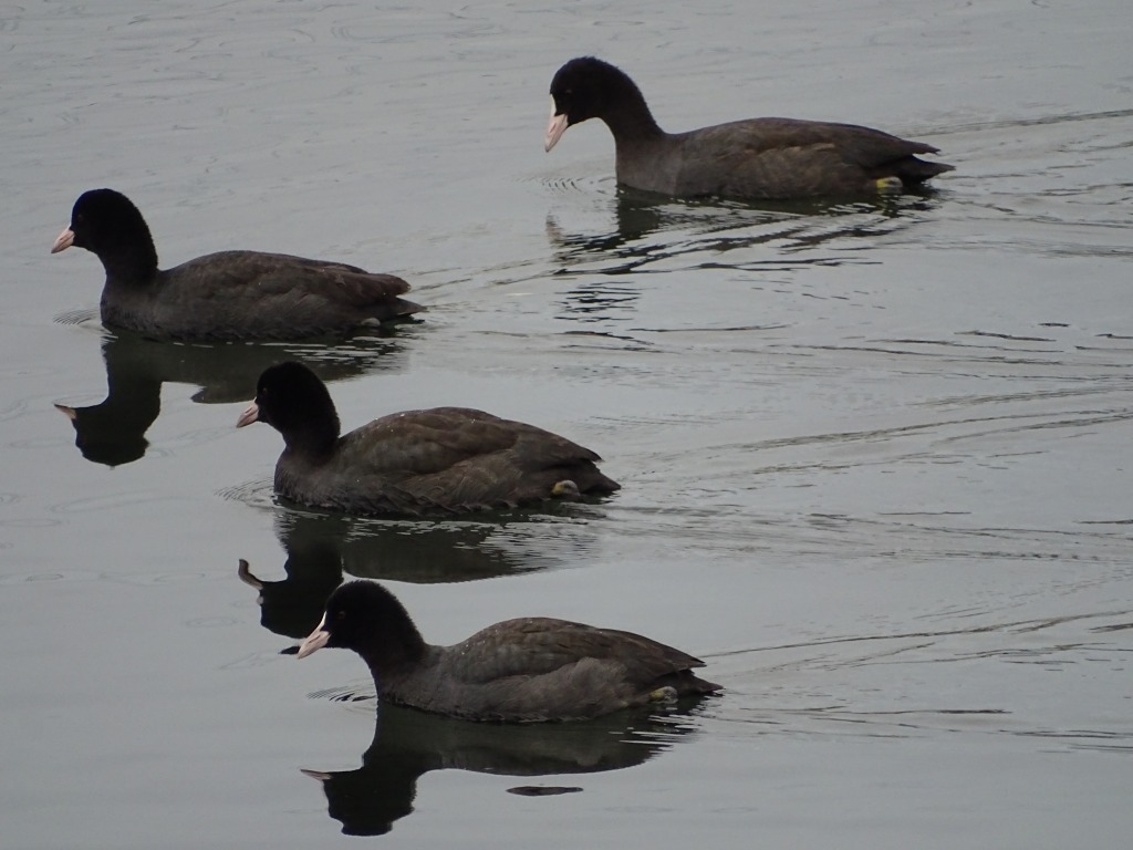 江津湖では少ないですが、夏を越した個体もいました。しかし、多くは渡ってきたオオバンたちです。 カモたちと一緒に泳いでいますのでカモの仲間と思われがちですが、クイナの仲間となっています。江津湖では、最も多く見かける野鳥の一つです。