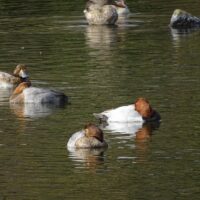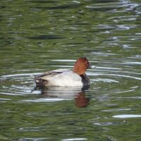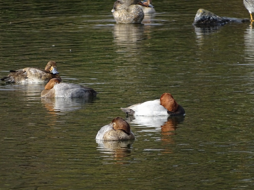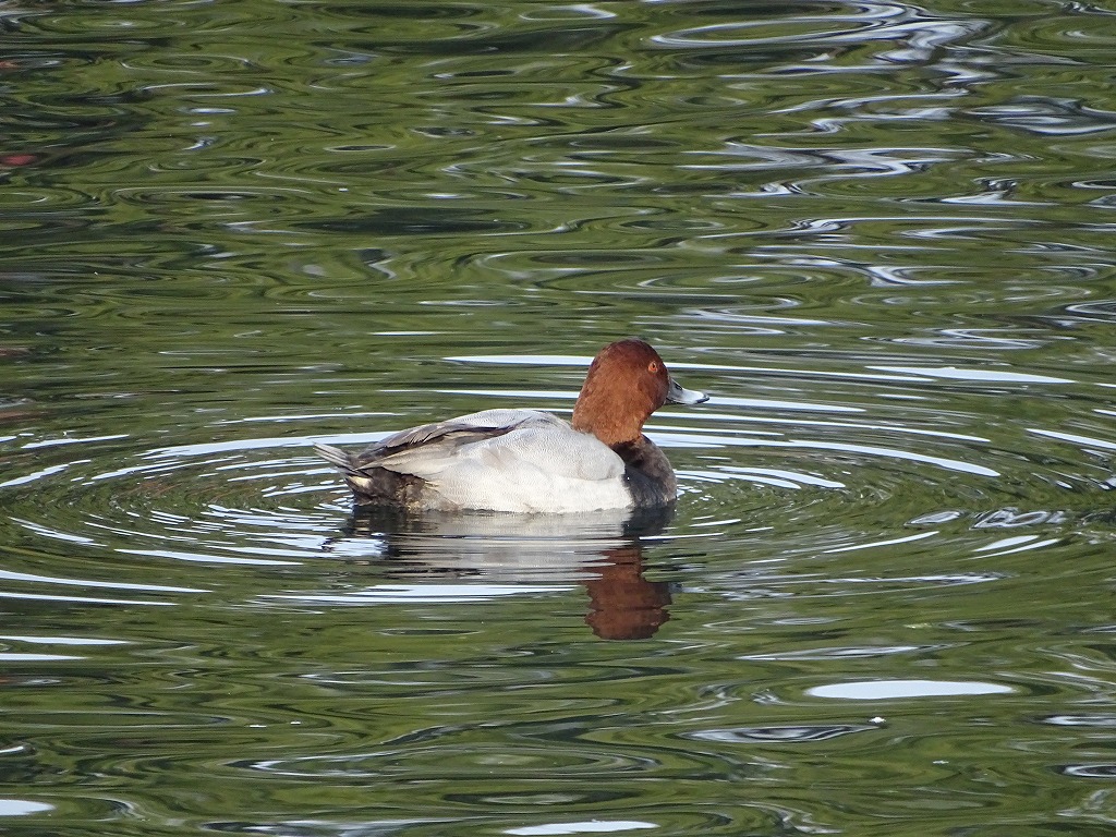 海ガモ類ですので、全身水につかって潜る姿を見かけます。よく見かけるヒドリガモなどは、潜る時おしりが浮いている状態です。 江津湖ではときどき見かけますが、長く滞在しない印象です。