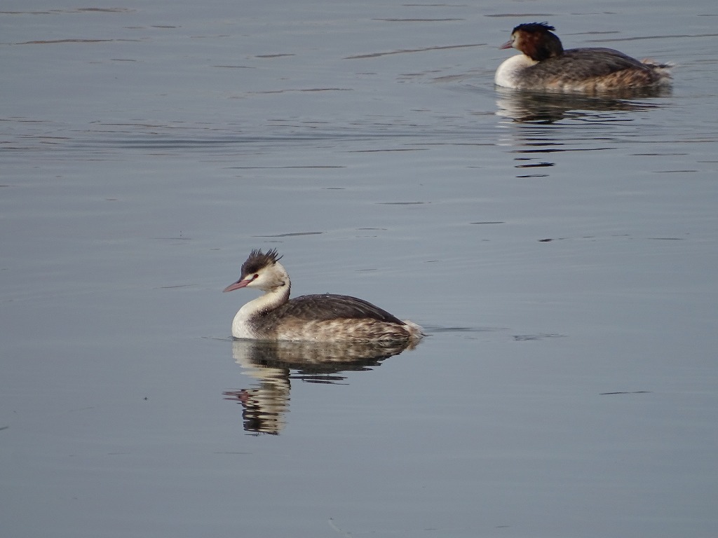カンムリカイツブリは、今季は下江津湖でよく観察できていましたが、今日は15羽ほどが集まっていました。
