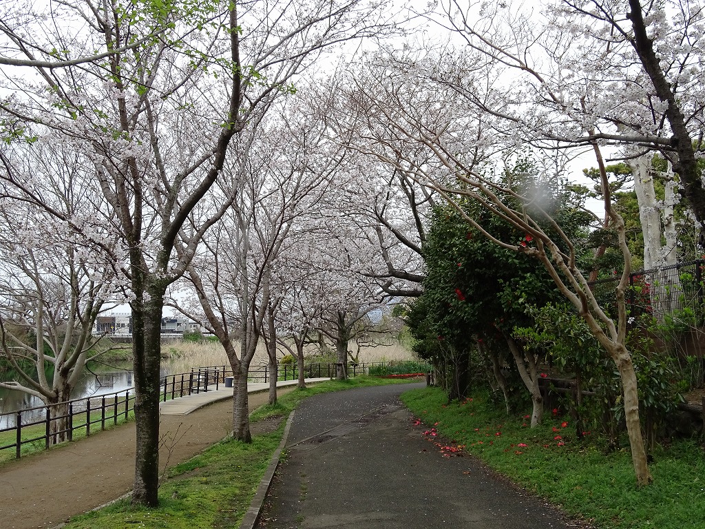 こんにちは、水前寺江津湖公園です。 園内のサクラが見頃を迎えています。