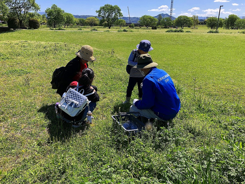 少し肌寒く風の強い日でしたが、植物はもちろん、いろいろな生きものたちを観察できました。植物は、シロツメクサ、ゲンゲ、オオジシバリなど。生きものは、ベニシジミ、クロイトトンボ、タベサナエ、ヤナギハムシなどなど。たくさんの自然を観察できました。参加者も江津湖の自然を実感していただけたのではないでしょうか。参加された皆様、お疲れさまでした。