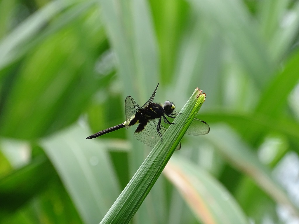 名前の由来も、その模様で腰の部分が空いているように見えることから、コシアキトンボと付けられたようです。腰の部分の色は、オスは白く、メスは黄色です(未成熟個体ではオスでも黄色く見えることがあるようです)。写真の個体は黄色ですので、メスとなります。※今回の個体は、腹部先端の形からオスの未成熟のようです。訂正いたします。