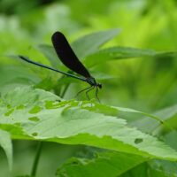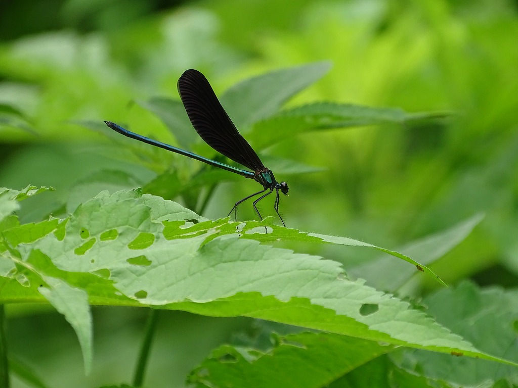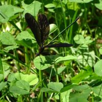 名前の通り、翅が黒いトンボです。細い体をしていますが、イトトンボの仲間ではありません。イトトンボよりも一回り大きく、よく目につきます。水辺や日陰の場所で目にすることが多いです。