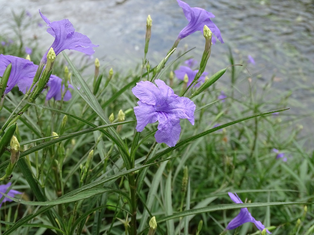 両方とも外来植物です。ヤナギバルイラソウは湖岸で多く観察できます。紫の花がきれいですね。