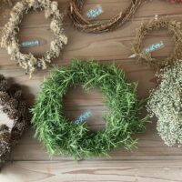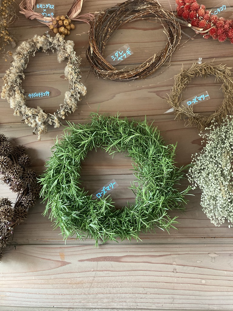 他にも、管理棟ホールの壁に園内で採取した様々な植物のリースを飾っていますので、