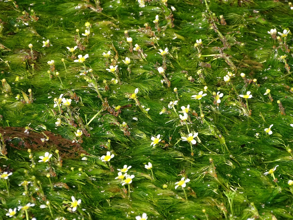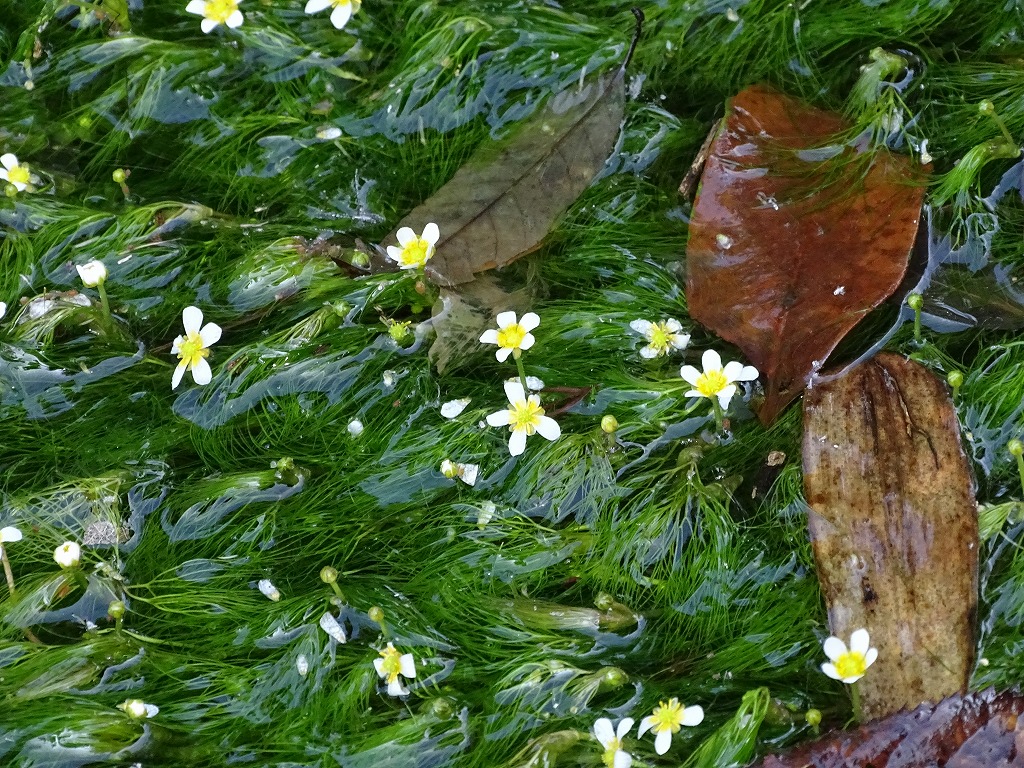 水路でヒメバイカモの花が咲いていました。