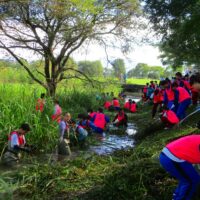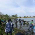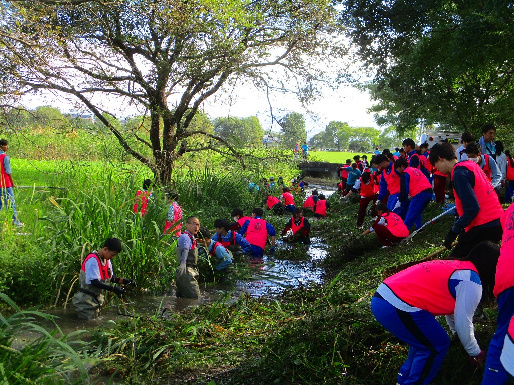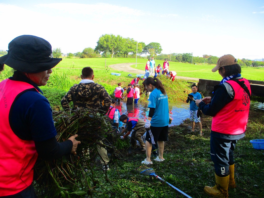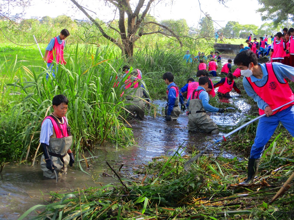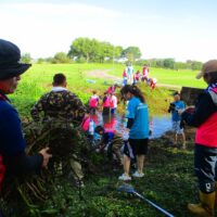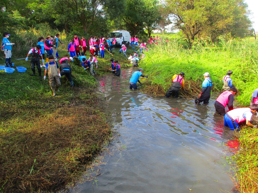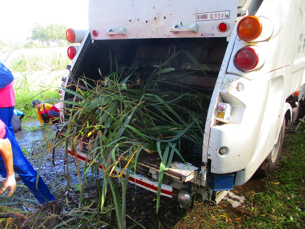 今回は水路に繁茂している外来水草のブラジルチドメグサやナガエツルノゲイトウを主に除去しました。およそ2時間の作業で、約3トンもの水草を除去できました。大勢の方々の力でとてもきれいになりましたよ。ご協力いただいた皆さま、お疲れさまでした。