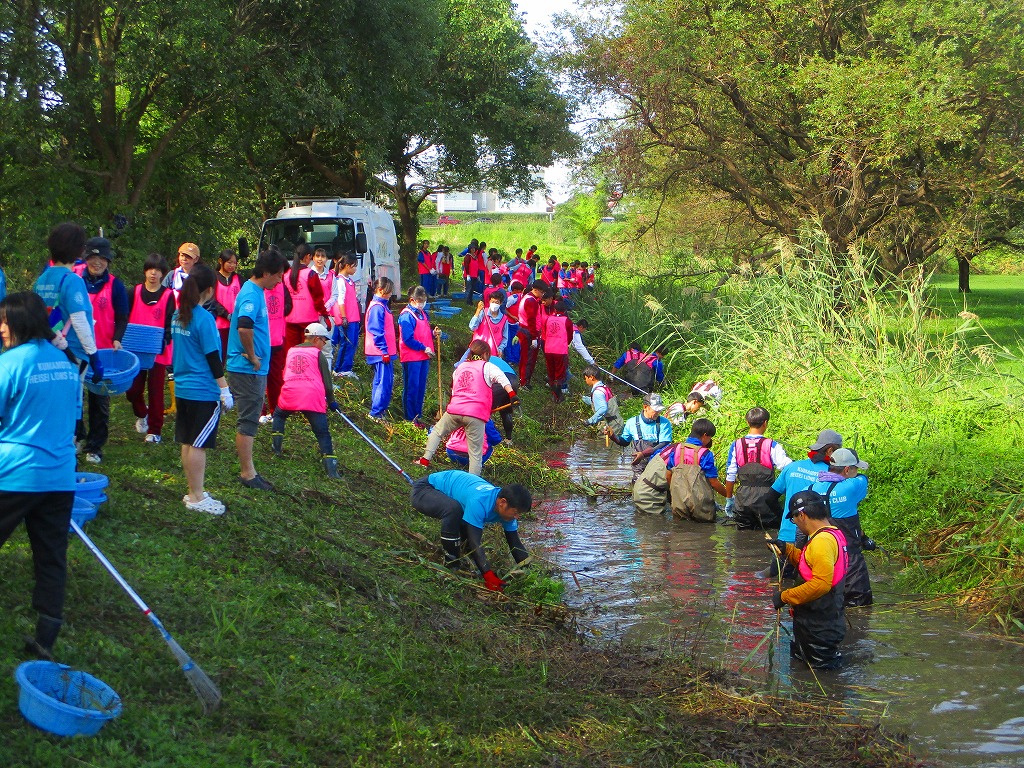こんにちは、水前寺江津湖公園です。 今日は広木地区で清掃ボランティア活動が行われました。平成ライオンズクラブの皆様総勢約100名の参加です。