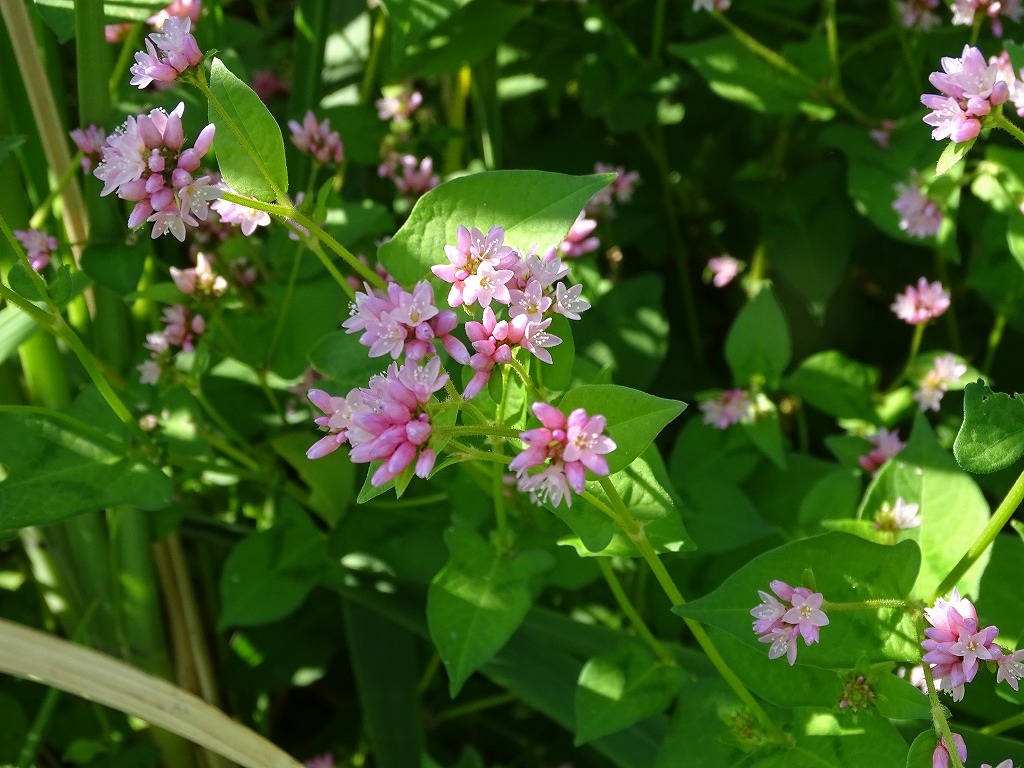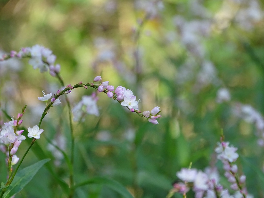 ヤナギタデは水際にたくさん咲いています。葉をかむとピリッとして辛いです。