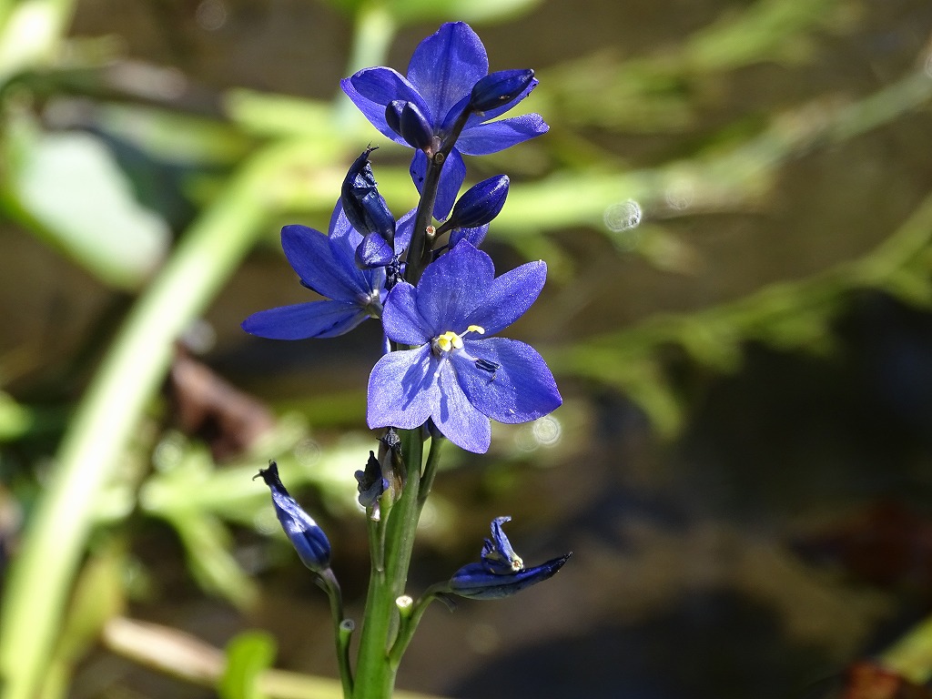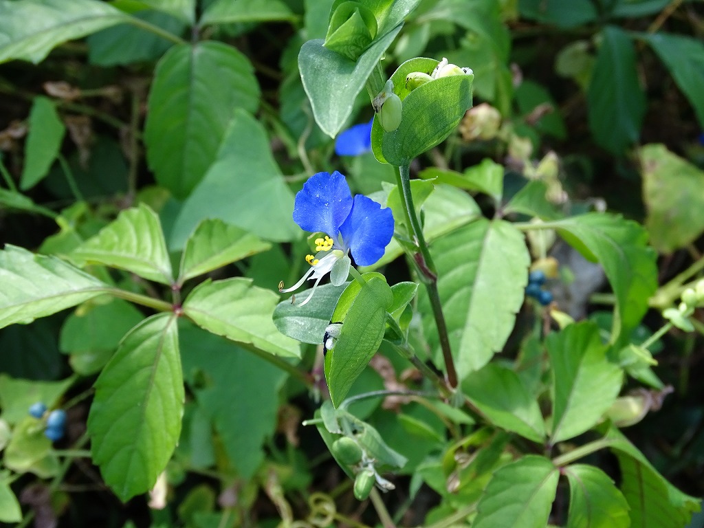 ミズアオイは、見頃は過ぎたようですが、まだ花は残っています。朝晩の冷え込みからでしょうか、花の色が非常に濃くてとてもきれいです。