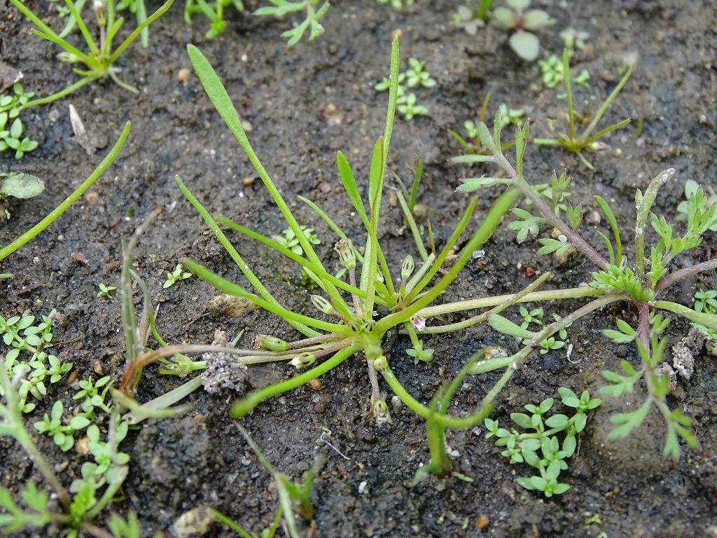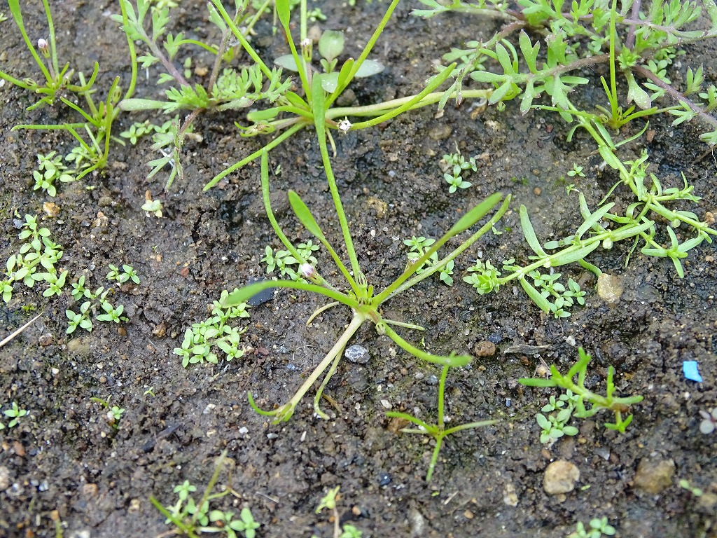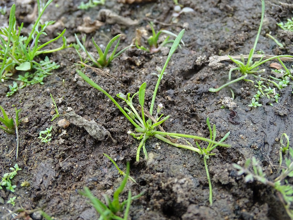 江津湖は10月中旬頃から水位が下がります。周辺の水田のために閉めていた堰を開けるからです。キタミソウは、水位が下がり干潟になったところから芽を出し始めます。冬の間はカモなどの野鳥が食べたりしますが、花は4月頃まで楽しめると思います。非常に小さな花ですので、探すのに苦労するかもしれません。見頃はもう少し先になりそうです。