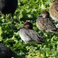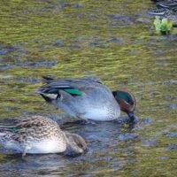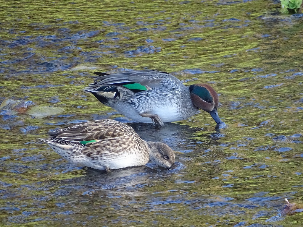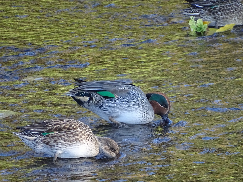 園内でコガモをよく見かけます。名前の通り、他のカモより一回り小さいカモです。