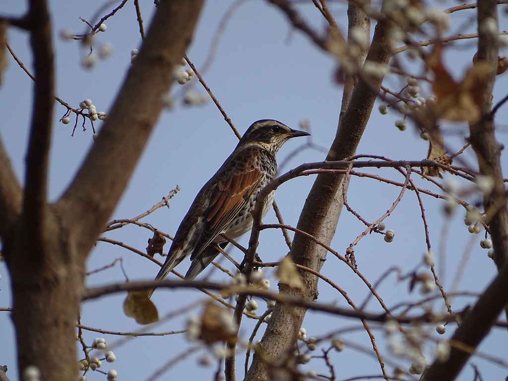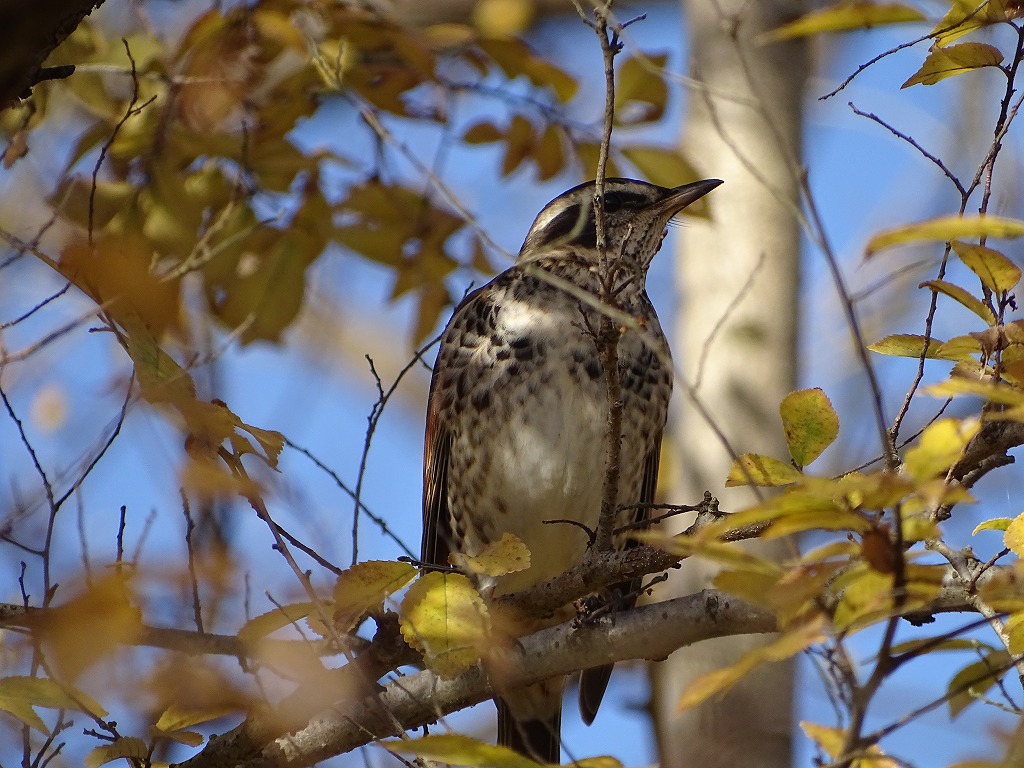 木々を行ったり来たりしながらエサを探しているようです。木々の葉っぱなどで姿が見えづらく、観察しにくいです。もう少し寒くなると地面に降りるようになりますので、その時にはゆっくり観察できると思います。