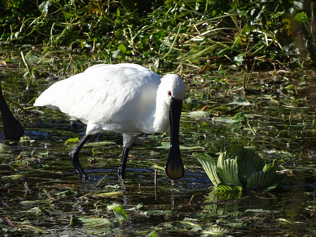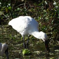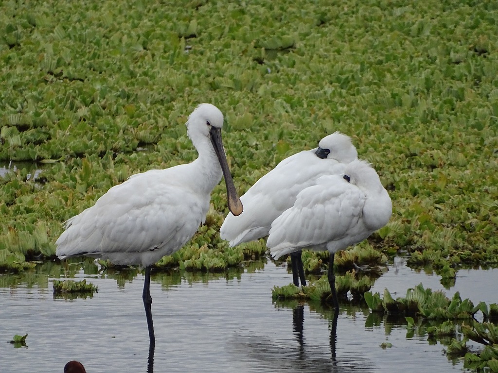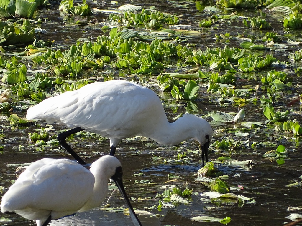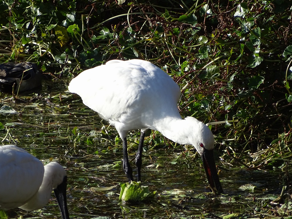 園内でクロツラヘラサギを見かけますが、その中にヘラサギも混ざっていました。クロツラヘラサギに似ていますが、クロツラヘラサギは名前の通り顔(つら)が黒く、ヘラサギは顔が黒くないことで見分けることができます。