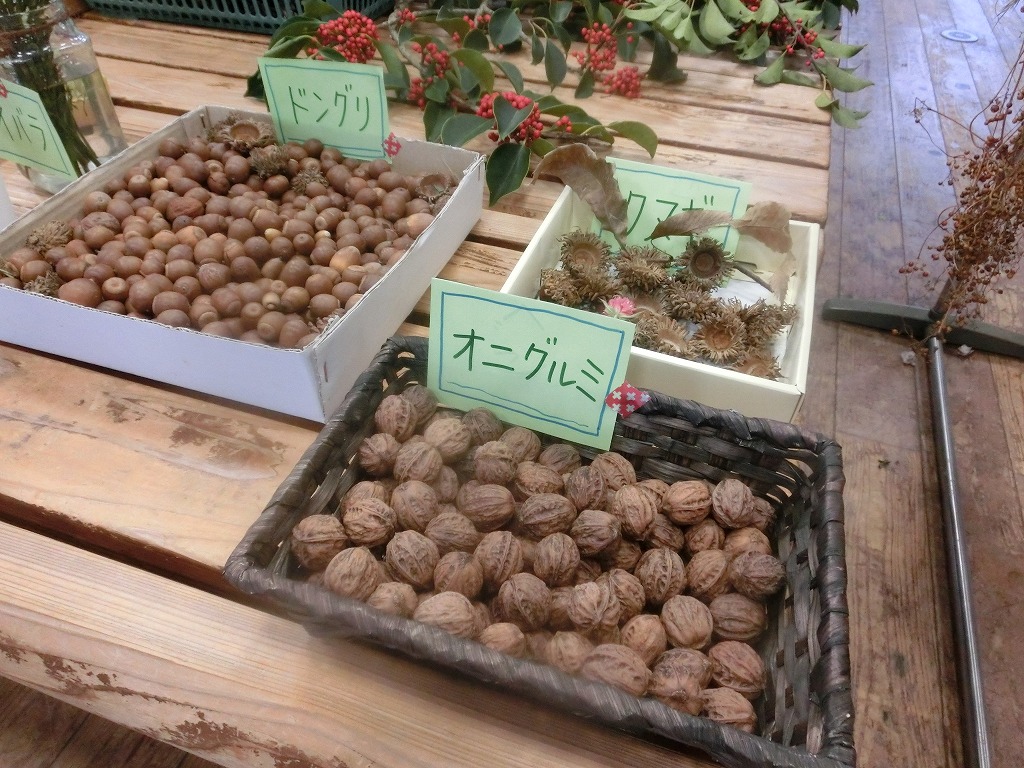 今日はわくわくえづっ子塾「Xmasかざりをつくろう!」を実施しました。主に園内で見ることのできる木の実や葉っぱ、花壇の花などを使ってクリスマスリースをつくります。