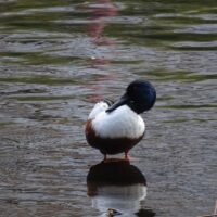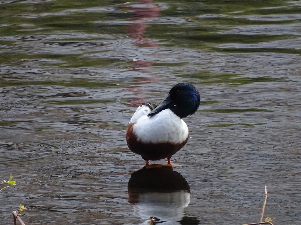 口ばしがスコップ状になっており、(口)はしが広いのでハシビロガモ。写真の個体はオスとなりますが、オスはきれいな体色をしていますね。江津湖では毎年見かけるカモですが、数は少ないので少し探さないといけません。
