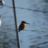 江津湖では上江津湖、下江津湖ともよく見かけます。上江津湖の方が、飛び込んでエサを捕る姿を近くで観察できます。その場所にはよくカメラマンの方々がいらっしゃいます。カメラマンの方々が多いところは、カワセミがエサを捕る様子をよく観察できるポイントとなっています。