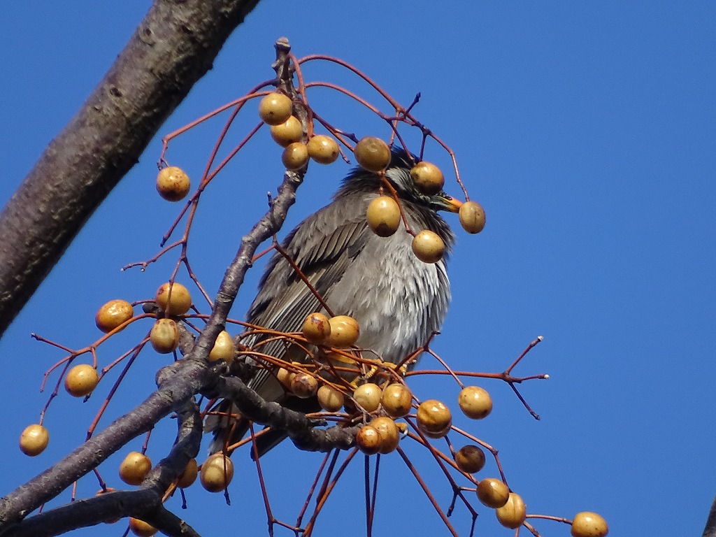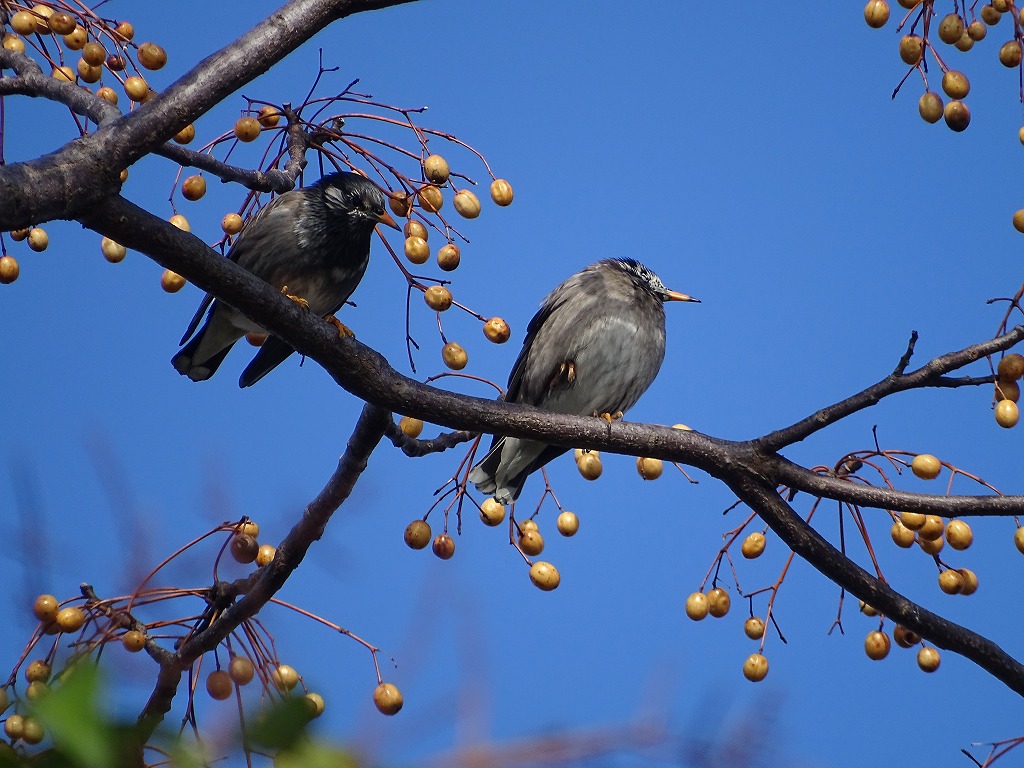 園内ではムクドリが集団で動き回っています。ムクドリは年中観察できる小鳥ですが、今の時期、以前より多く見かける印象です。