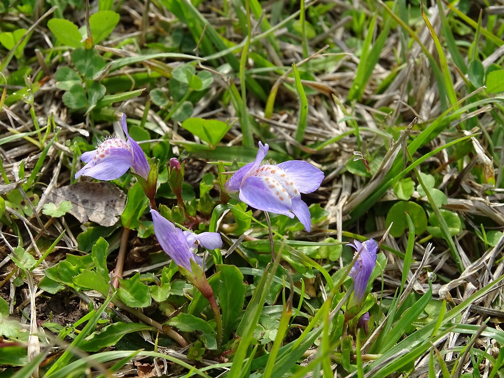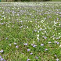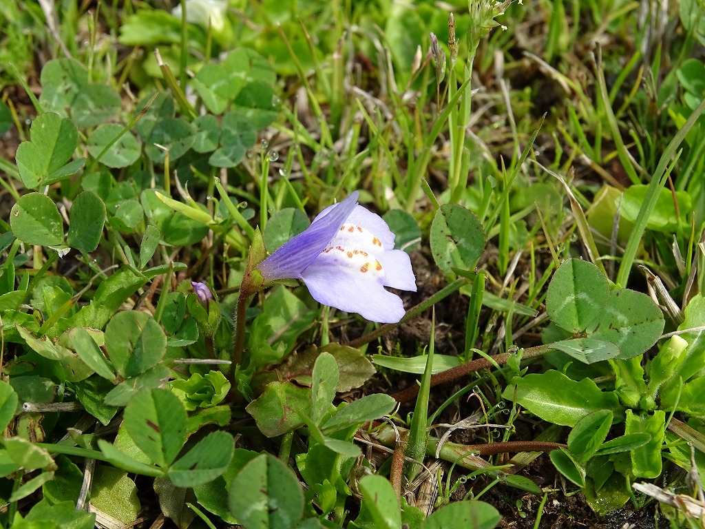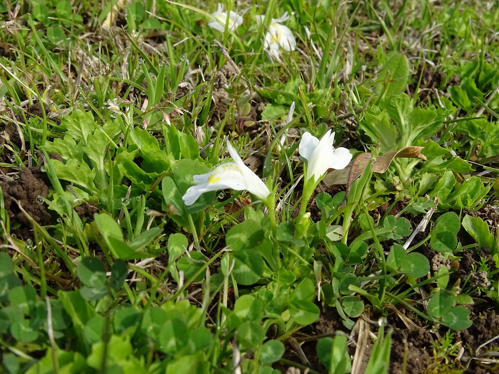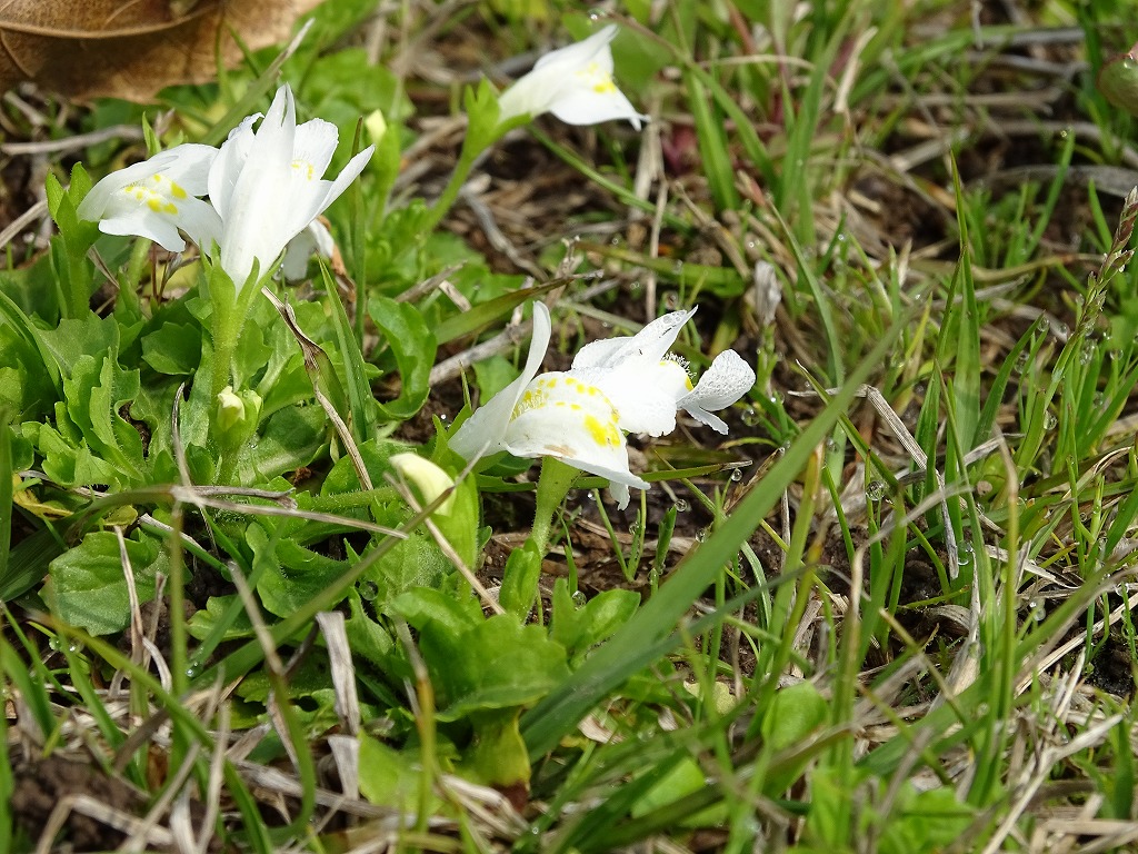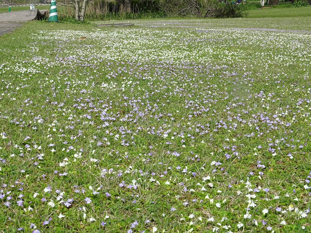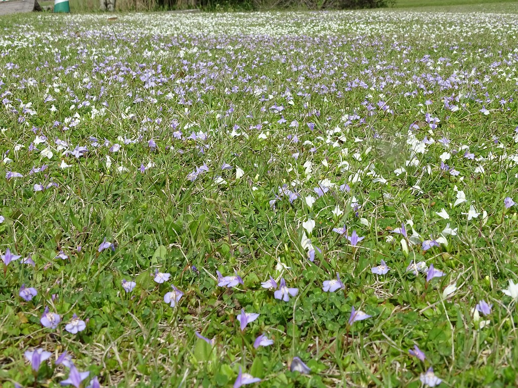 園内では色とりどりの花たちが咲き始めています。紫や白い花が地面一面に咲いているのを見かけます。サギゴケの花たちです。
