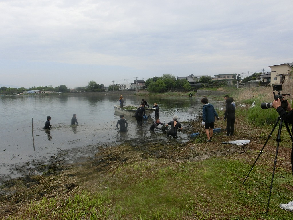 今回は水路に繁茂しているブラジルチドメグサ、ナガエツルノゲイトウなどを主に除去しました。およそ2時間の作業で、約9.5トンもの水草を除去できました。大勢の方々の力でとてもきれいになりましたよ。